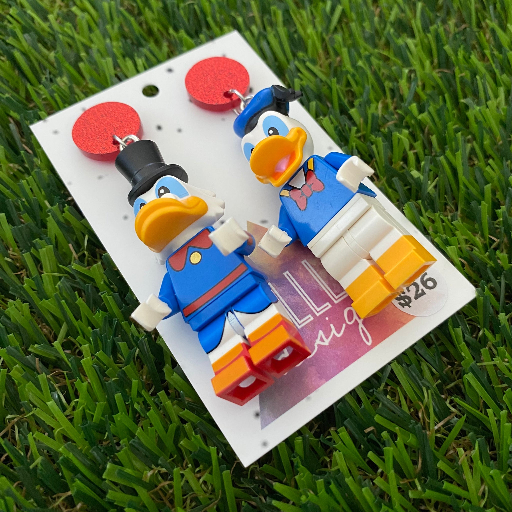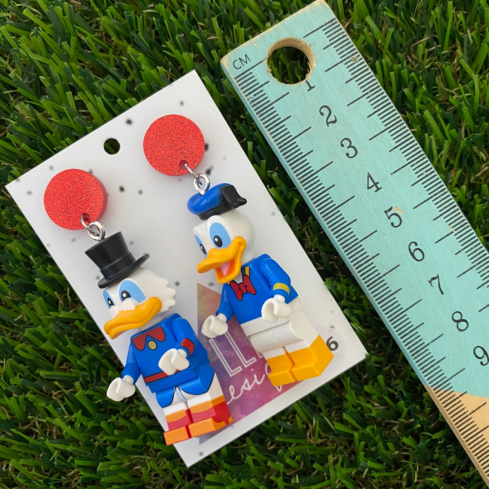 Brick Character Father and Son Ducks Dangle Earrings - Featuring Red Glitter Tops!