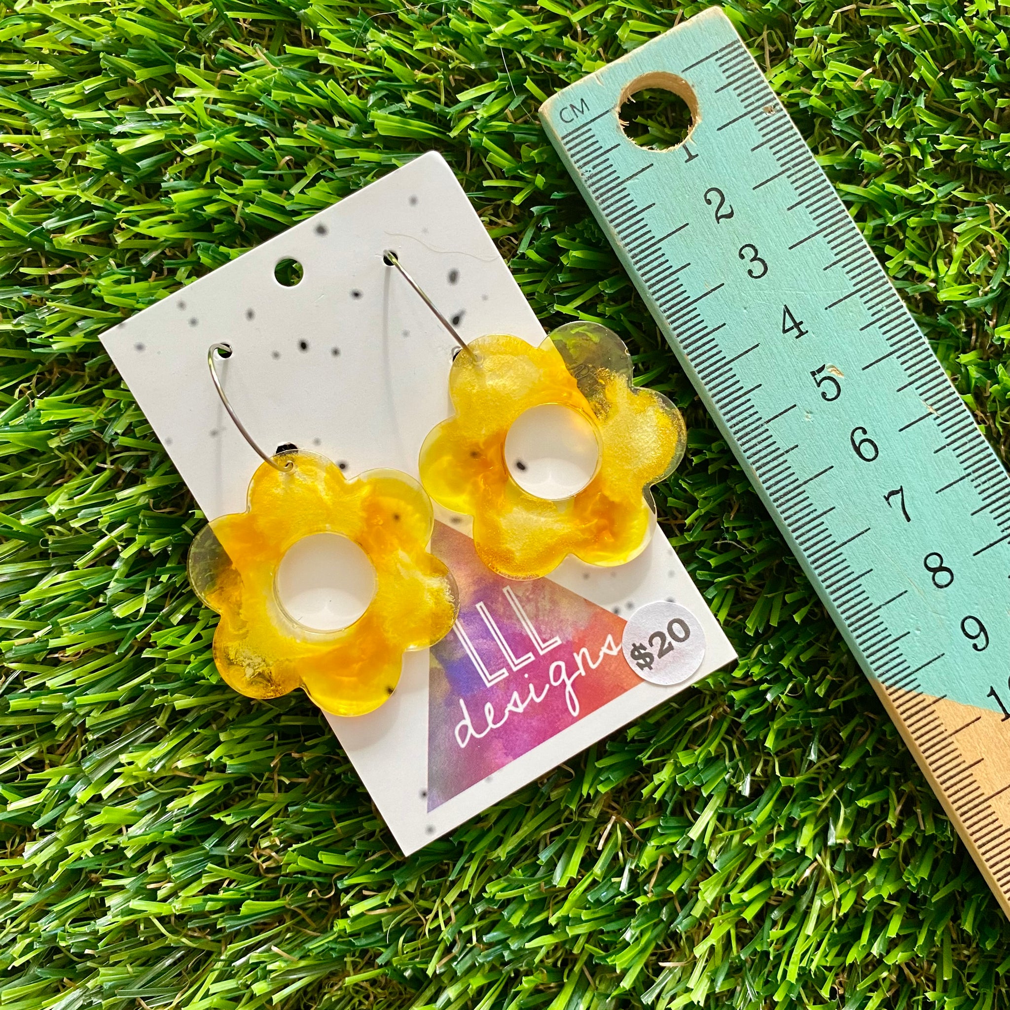 Alcohol Ink Resin Earrings - Yellow Daisies Featuring a Silver Hoop!