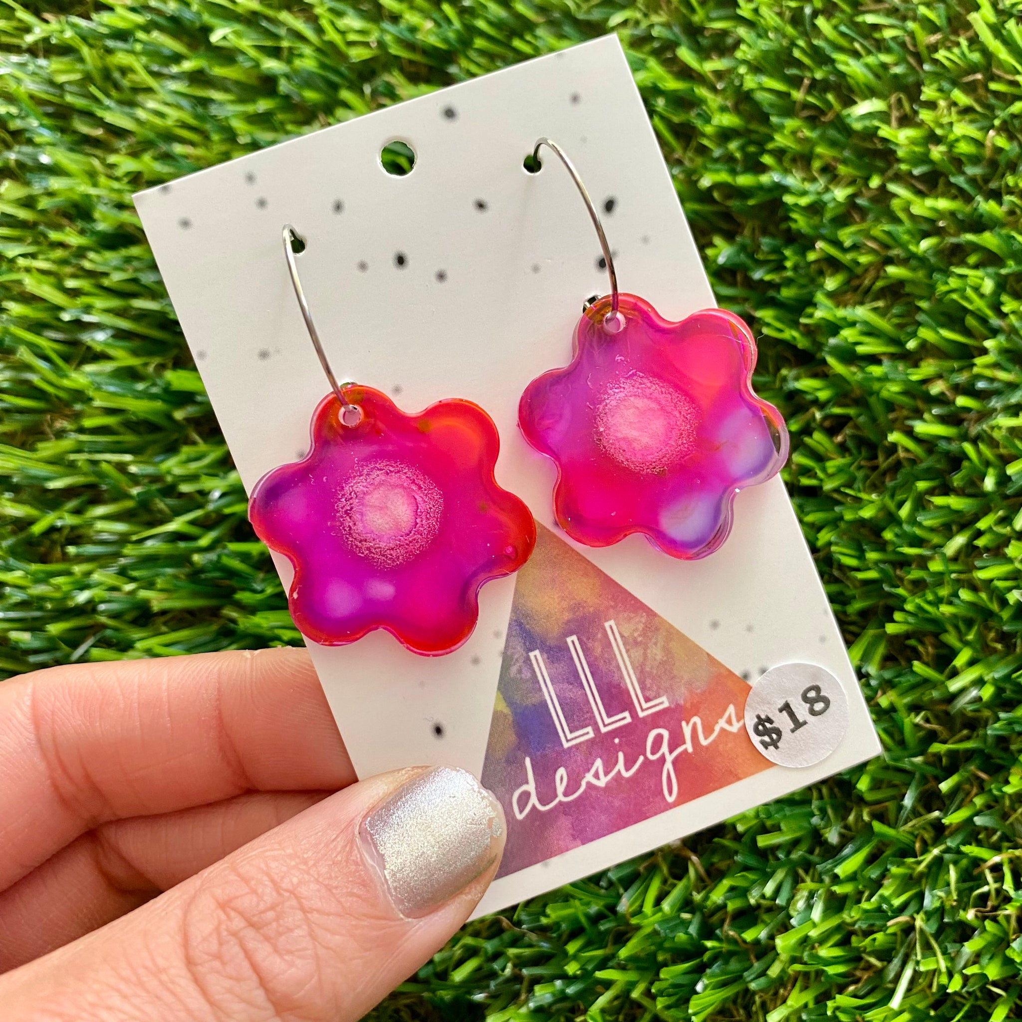 Alcohol Ink Resin Earrings - Pink and Purple Flowers Featuring a Silver Hoop!