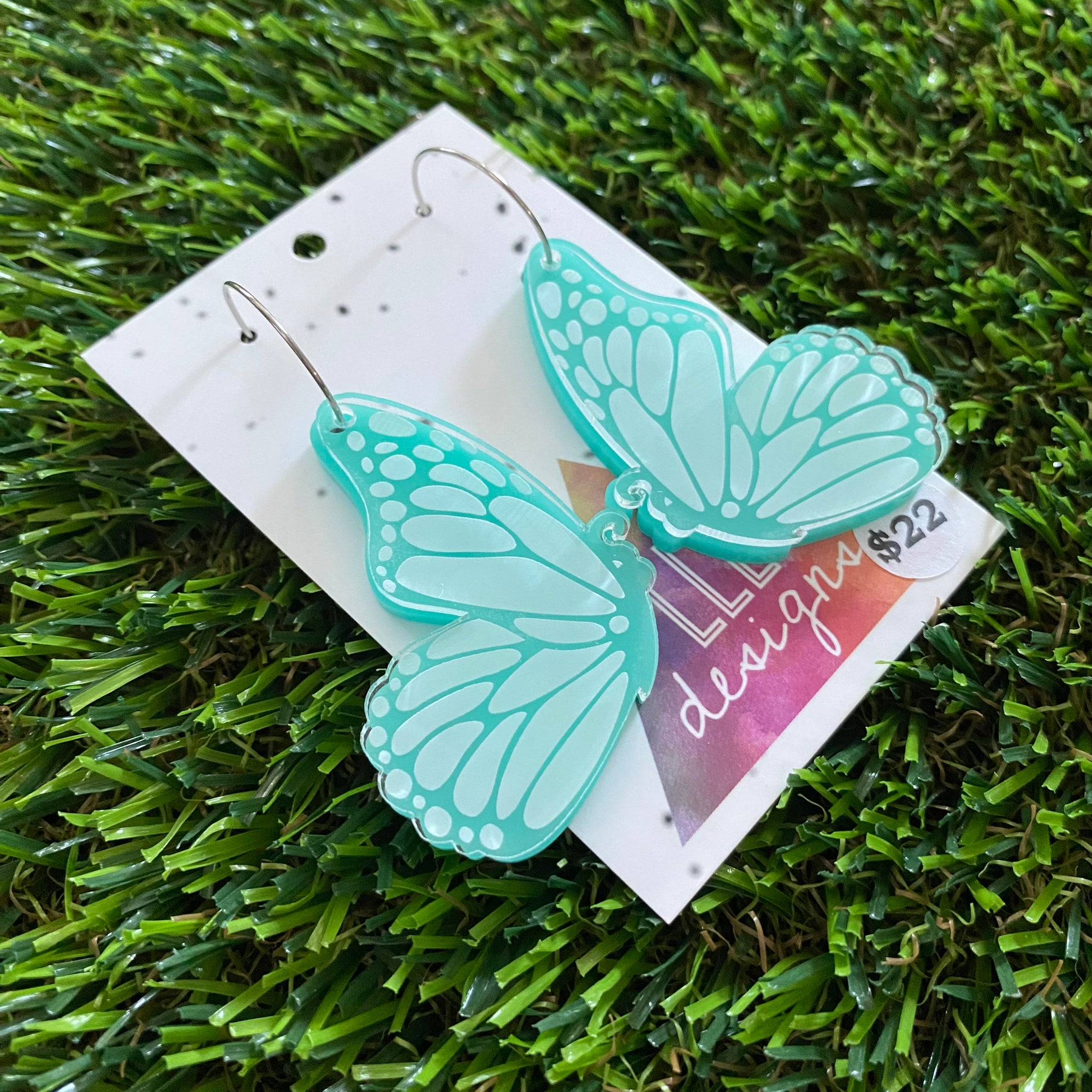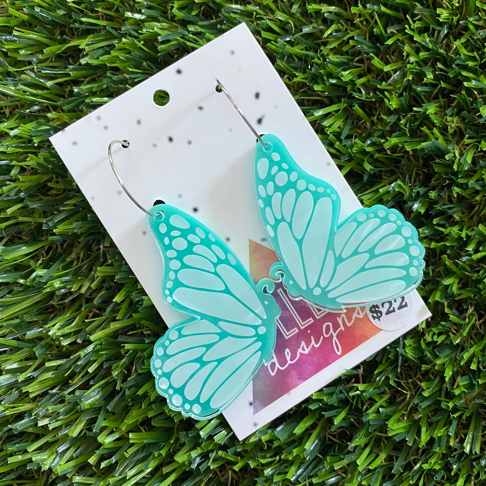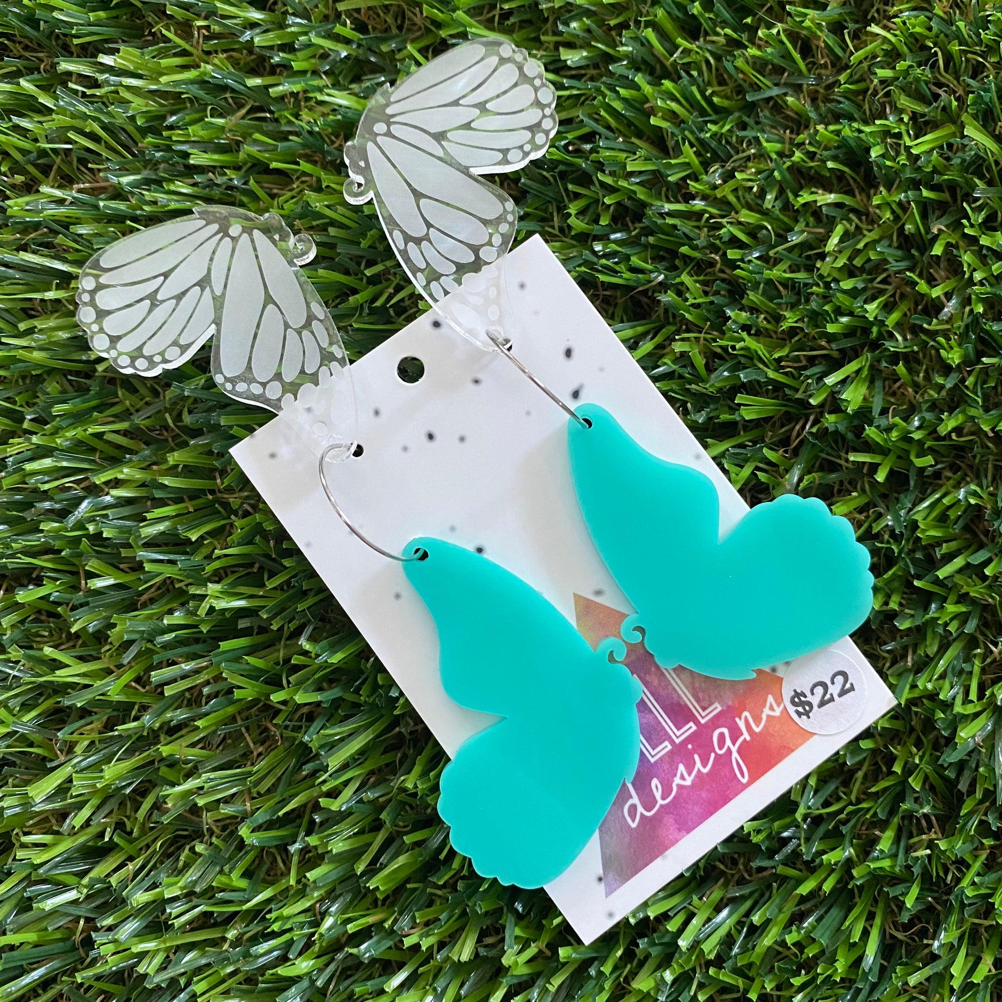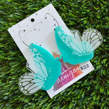 Butterfly Hoops - Mint Double Stacked Butterflies with Silver Hoops!