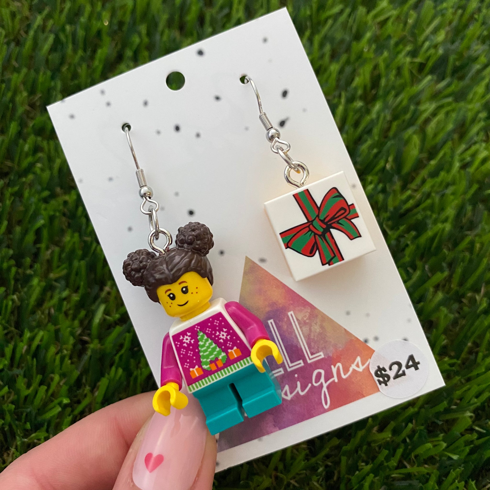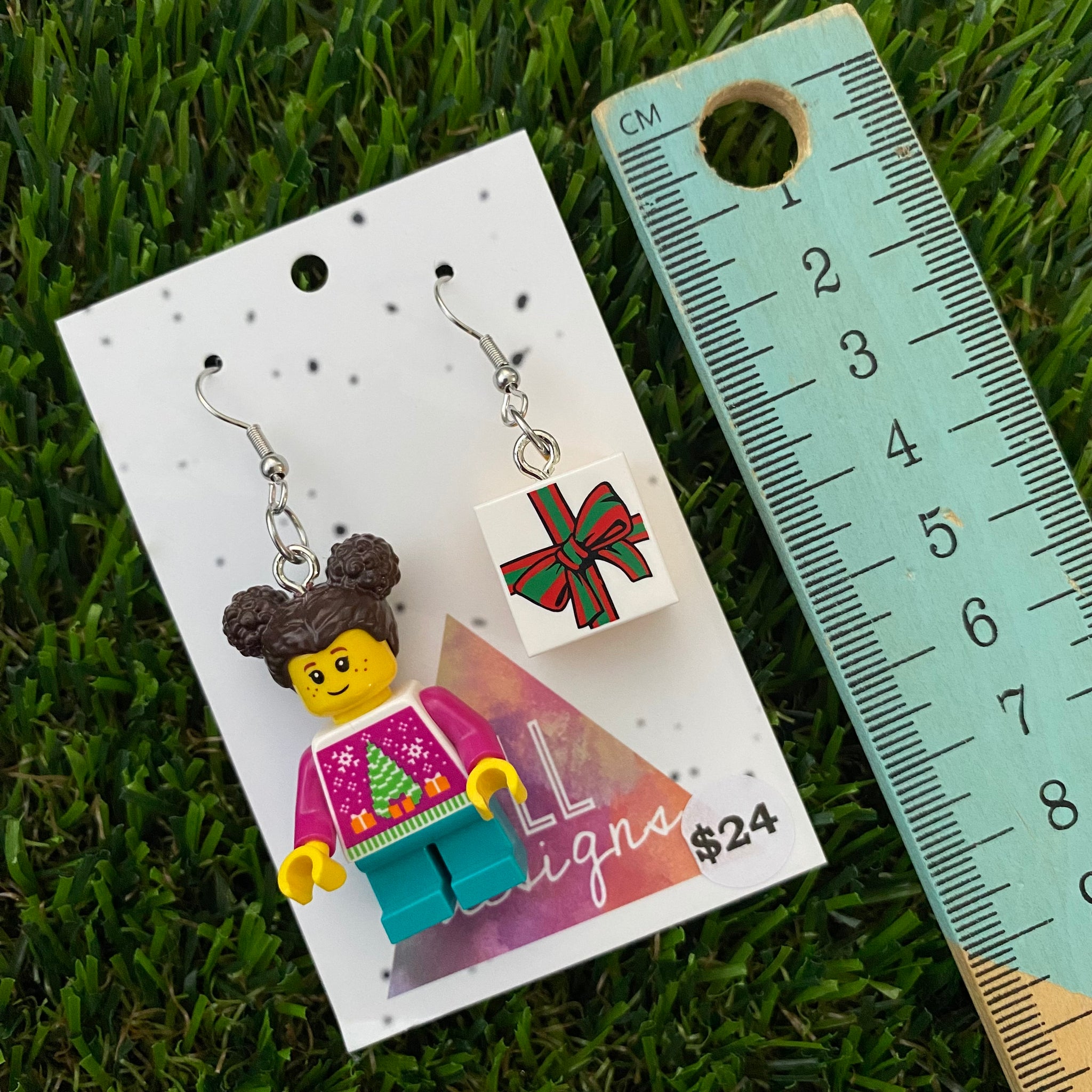 Christmas Gift Girl Brick Earrings - Christmas Present and Girl Dangle Earrings, Featuring Surgical Stainless Steel Hooks