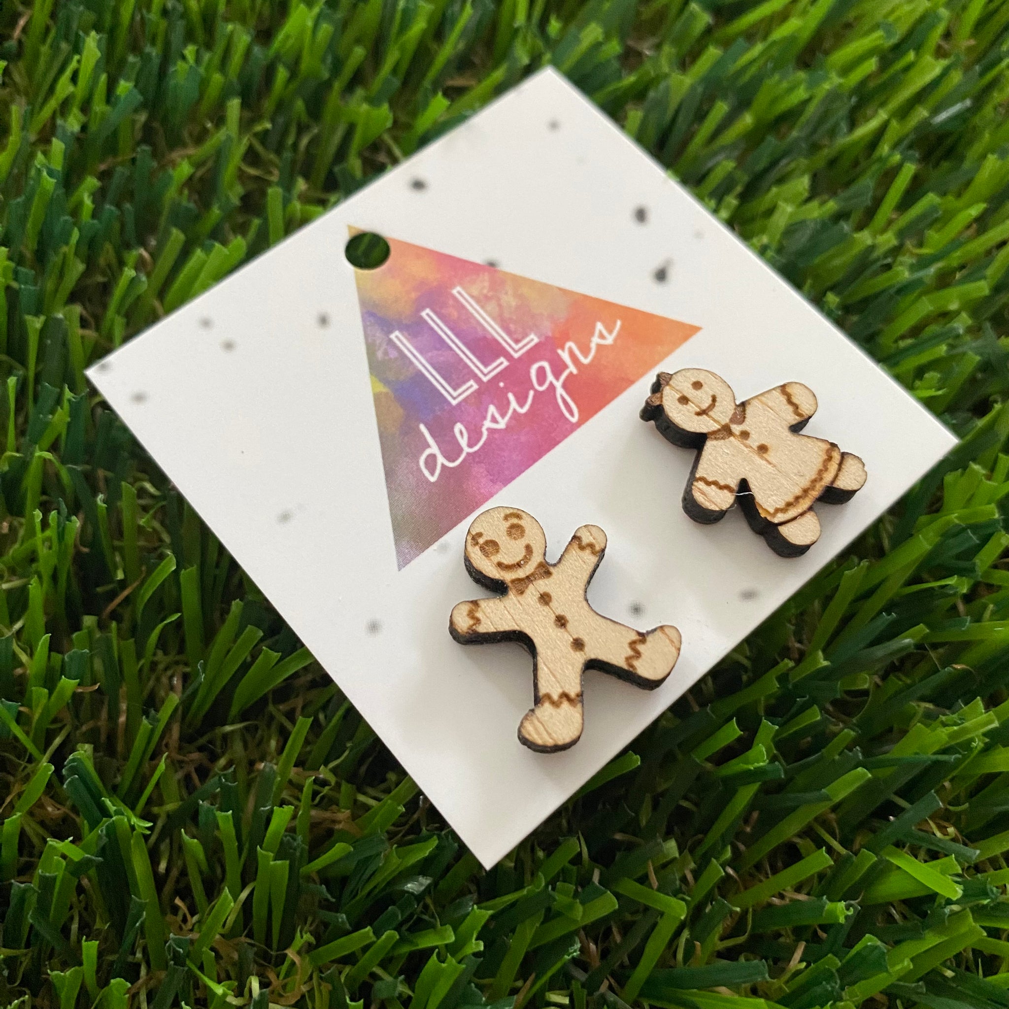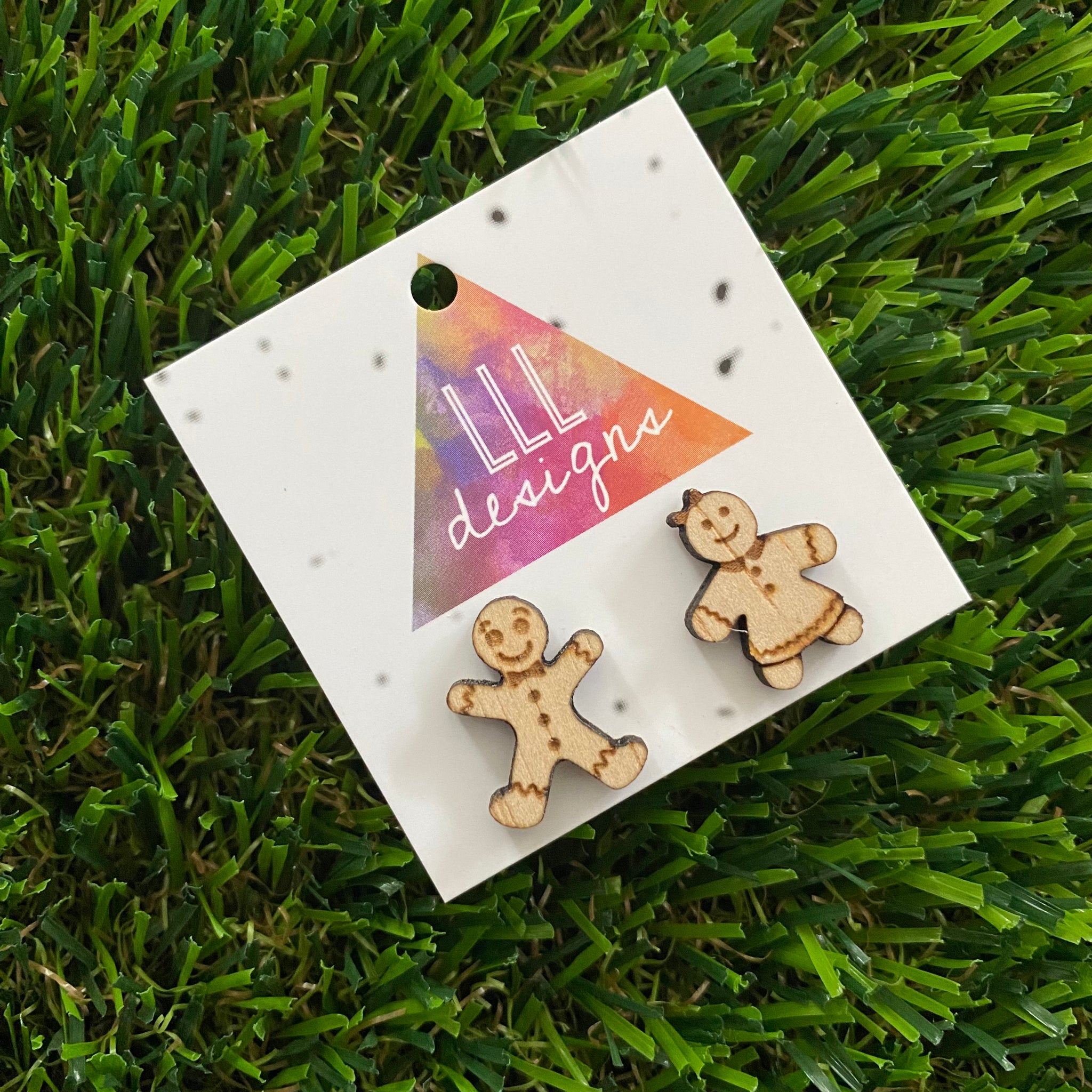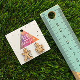 Christmas Gingerbread People Stud Earrings. Timber Etched Earrings.