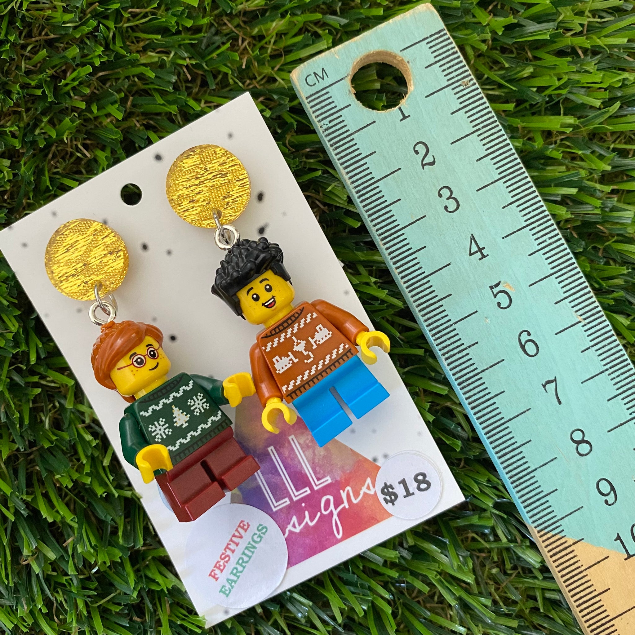 Christmas Kid Brick Earrings- Christmas Sweater Kids Dangle Earrings, Featuring Glitzy Yellow Tops.