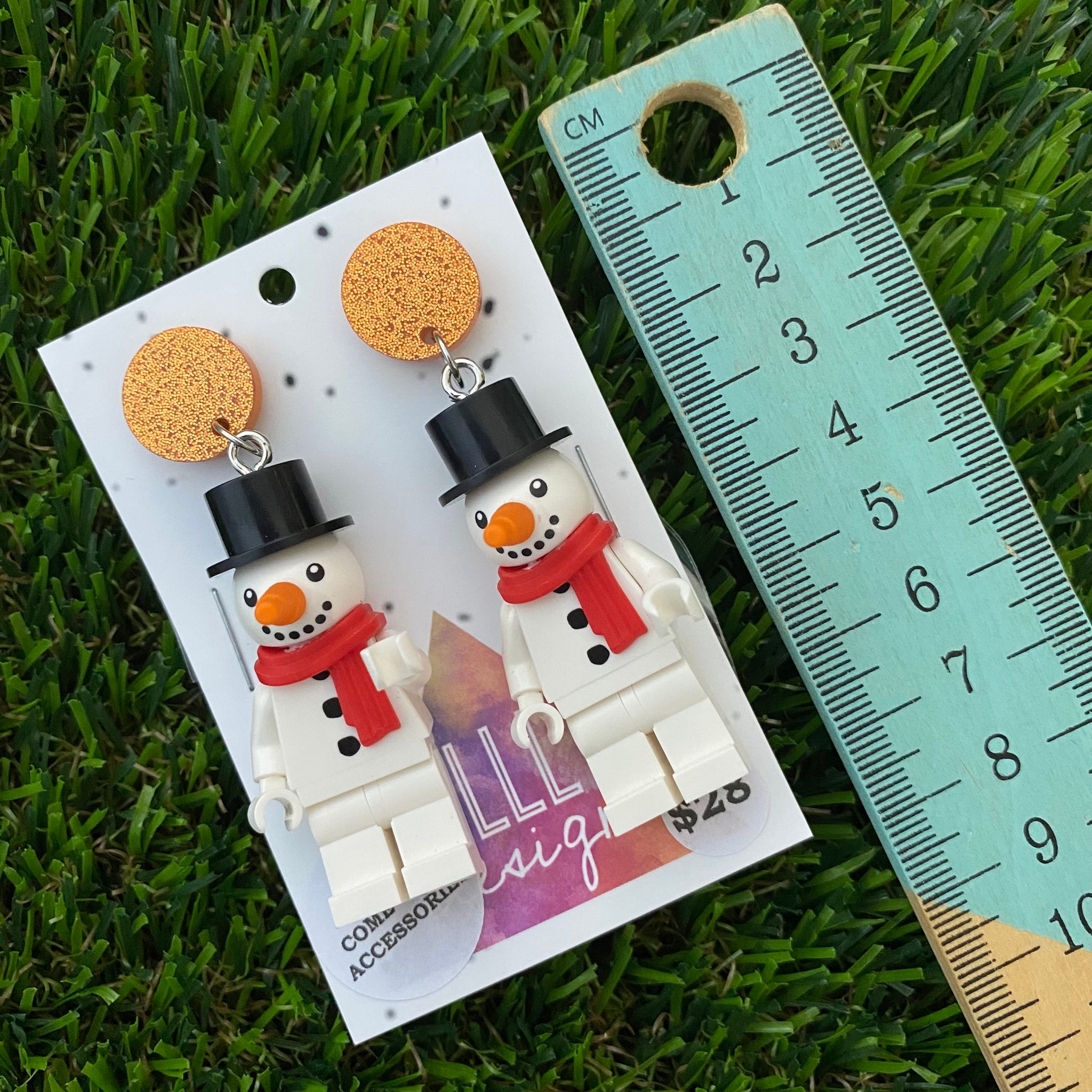 Christmas Snowman Brick Earrings - Festive Snowman with a Carrot Nose Dangle Earrings, Featuring Orange Tops.