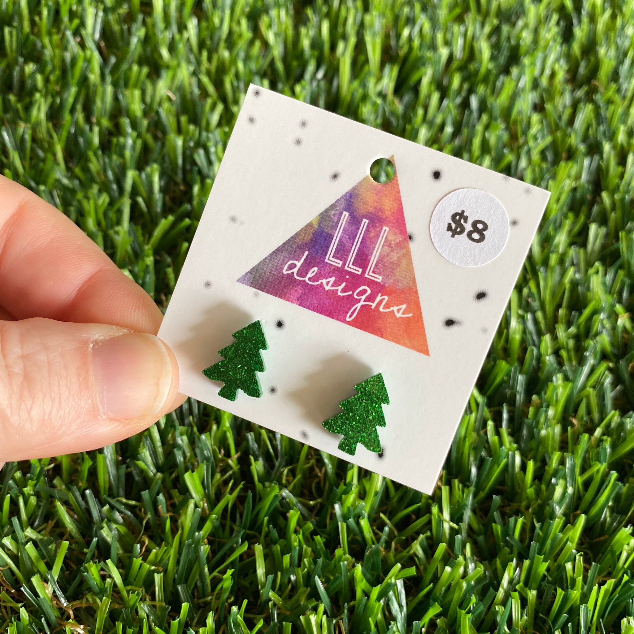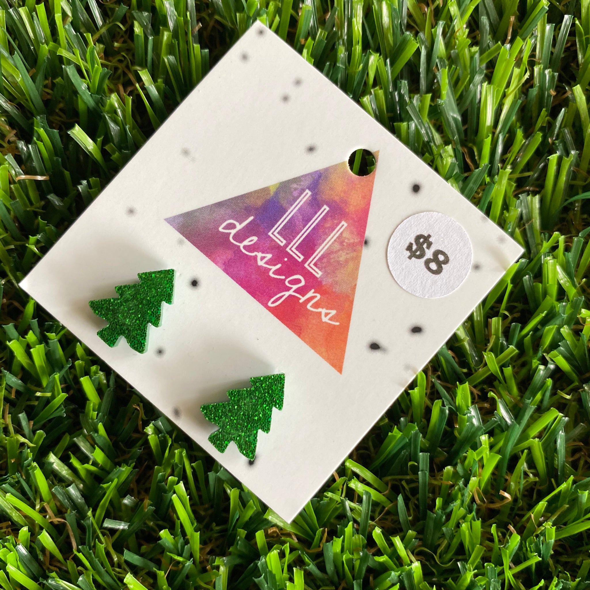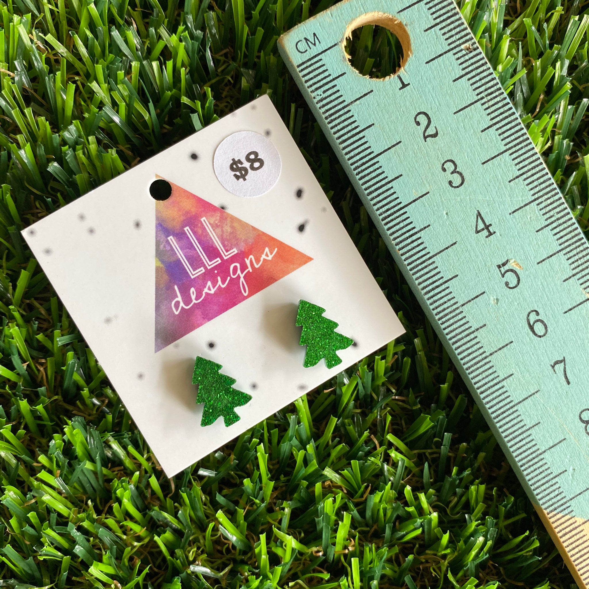 Christmas Tree Earrings - Glitter Green Christmas Tree Stud Earrings.