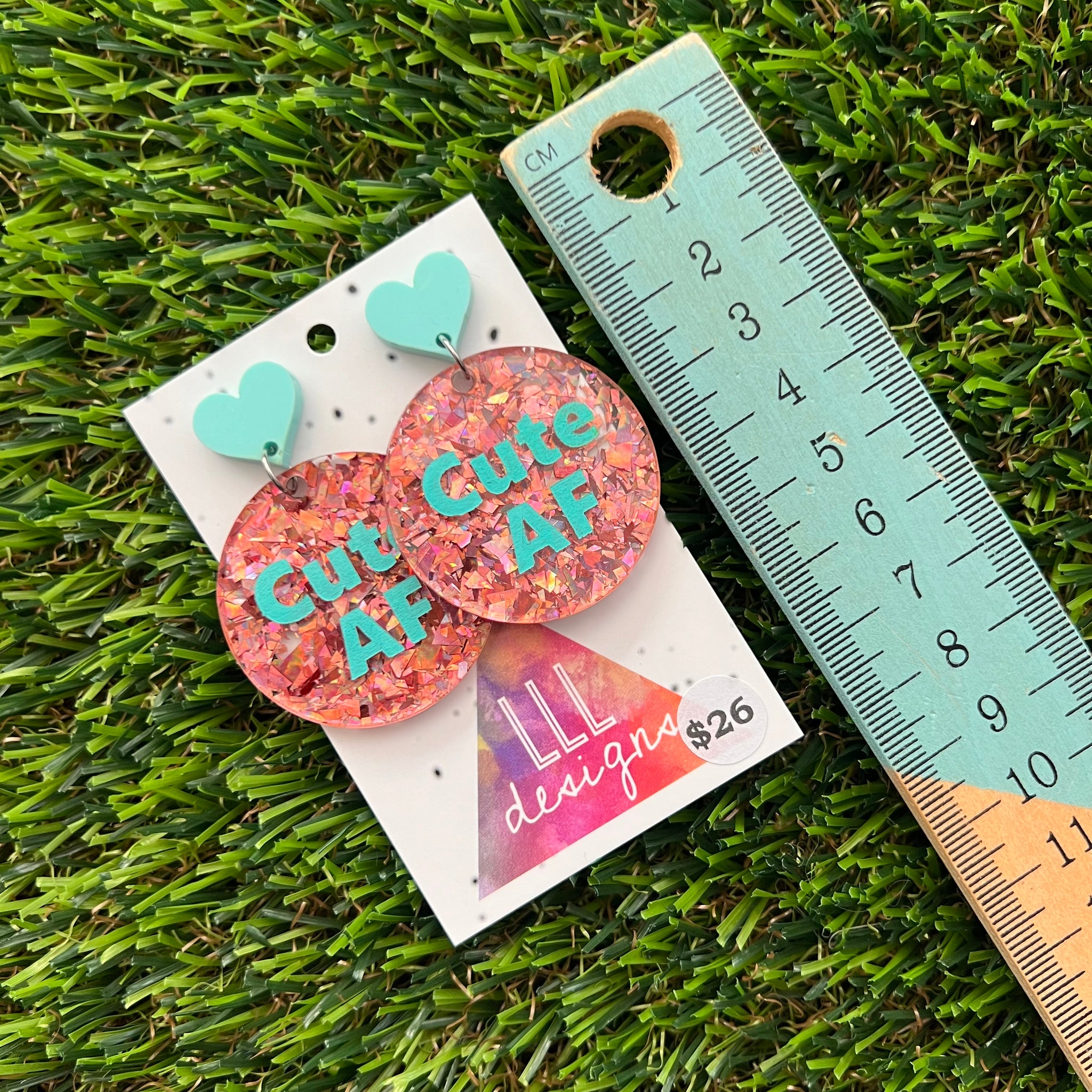 Cute AF Dangle Earrings Featuring Vibrant Blue Heart Shaped Top - Part of our AF Range!