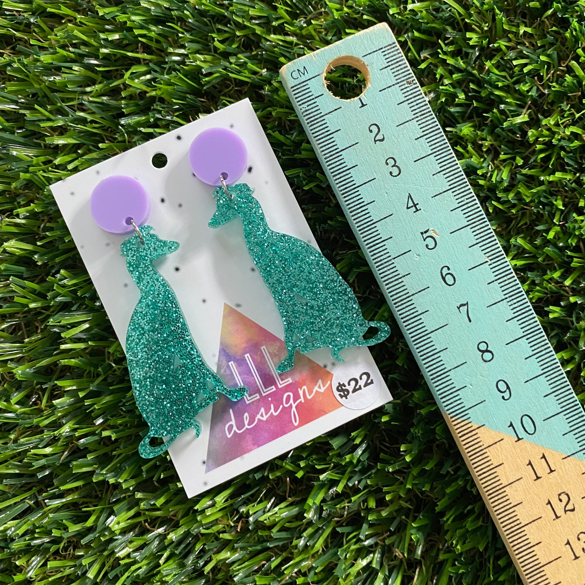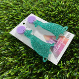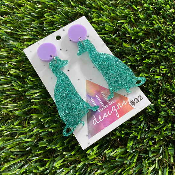 Dog Earrings - Glitter Mint Greyhounds with Pastel Purple Top!