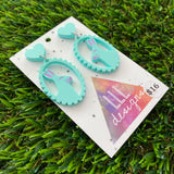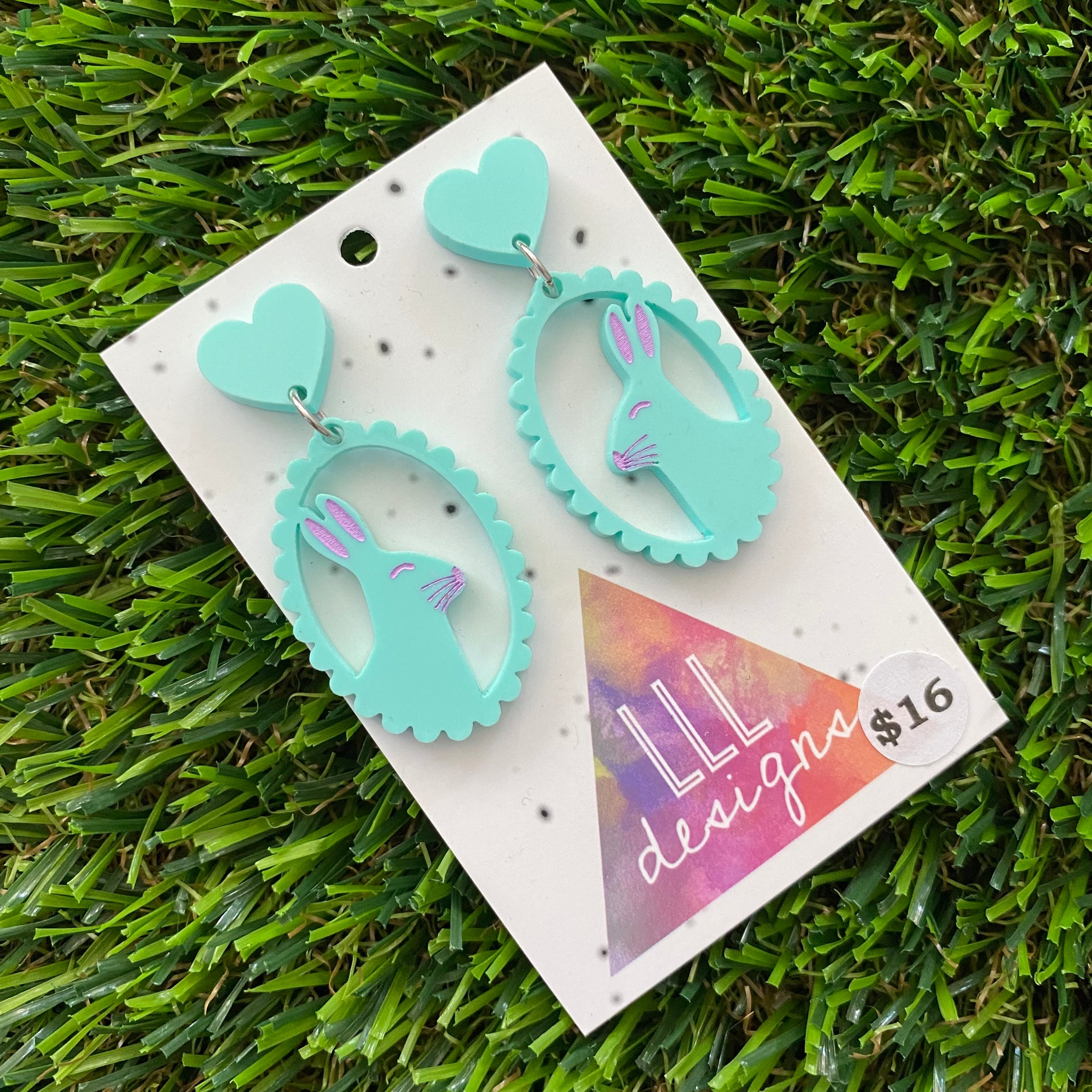 Easter Earrings - Mint Easter Bunny Cameo with Pink Hand Painted Detailing and Mint Heart Tops!