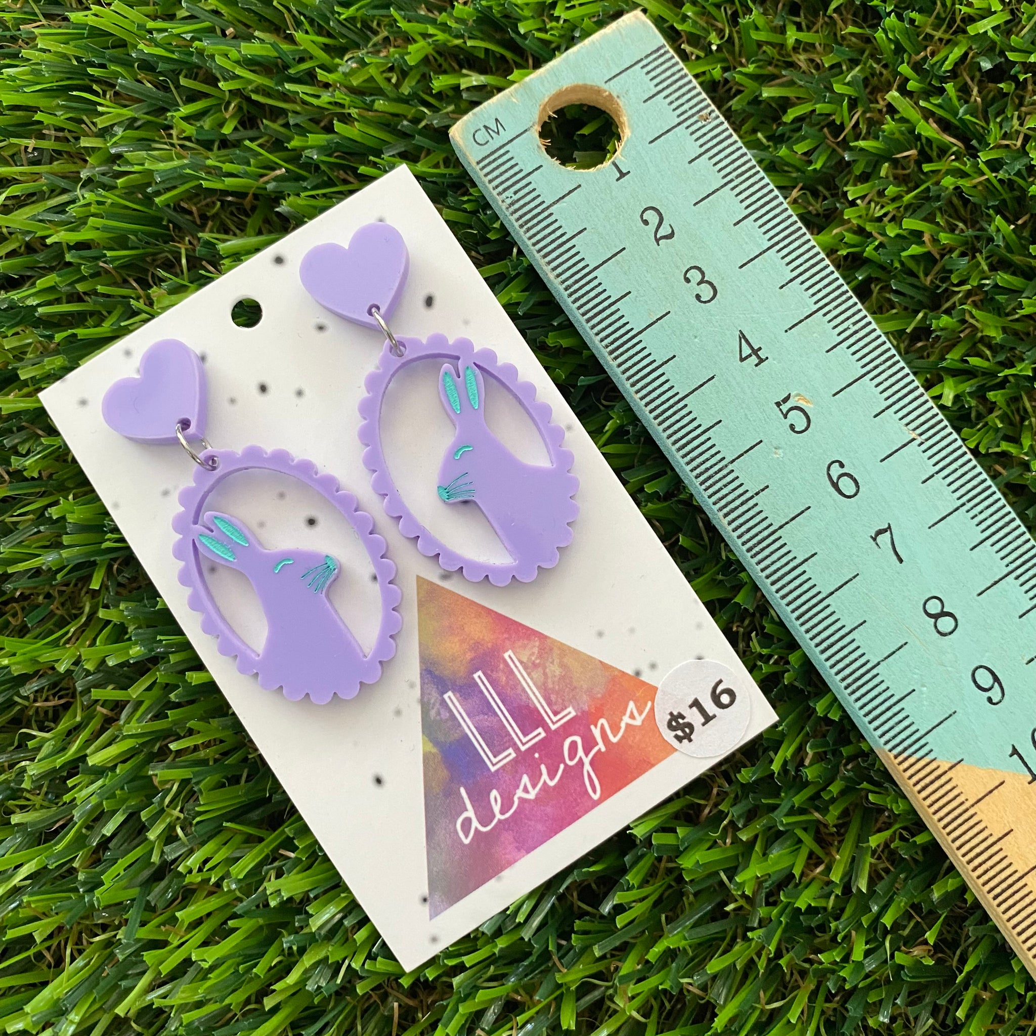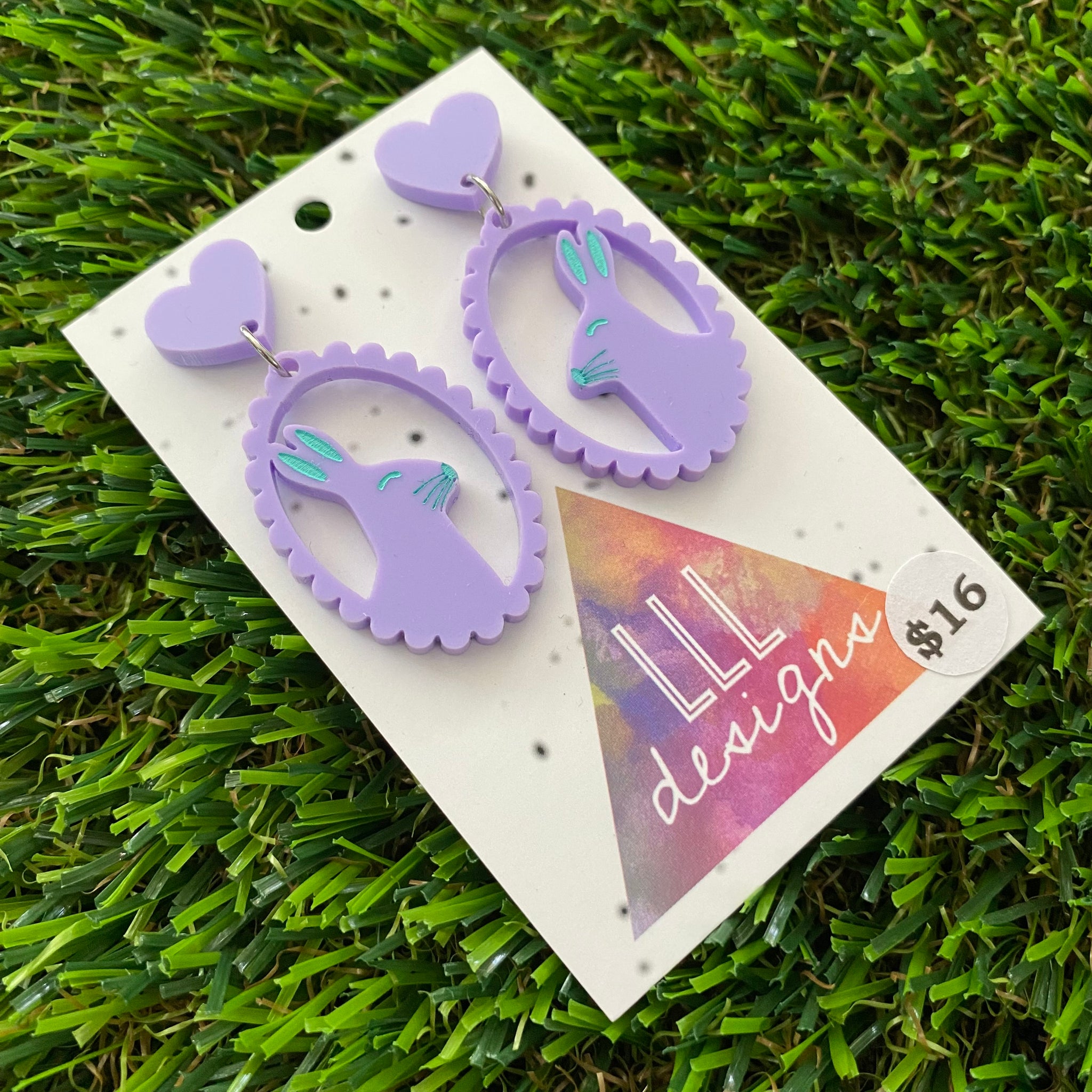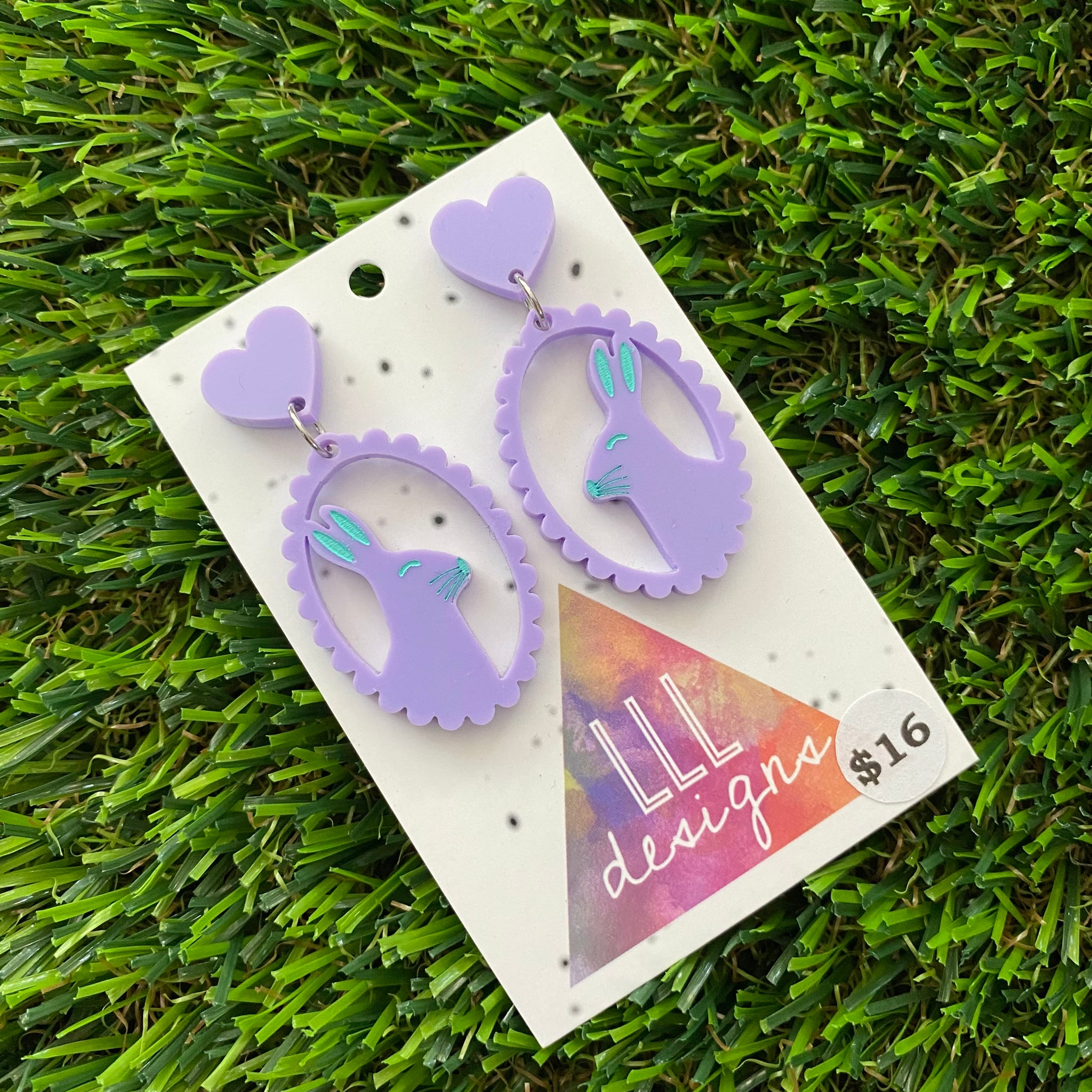 Easter Earrings - Pastel Purple Easter Bunny Cameo with Mint Hand Painted Detailing and Pastel Purple Heart Tops!