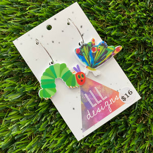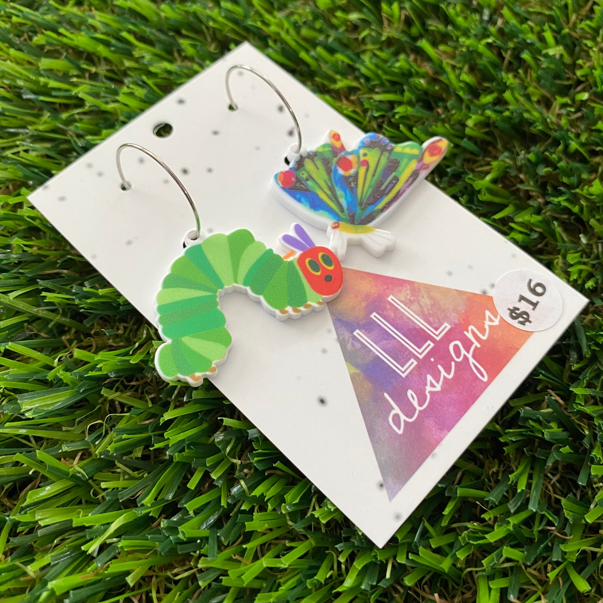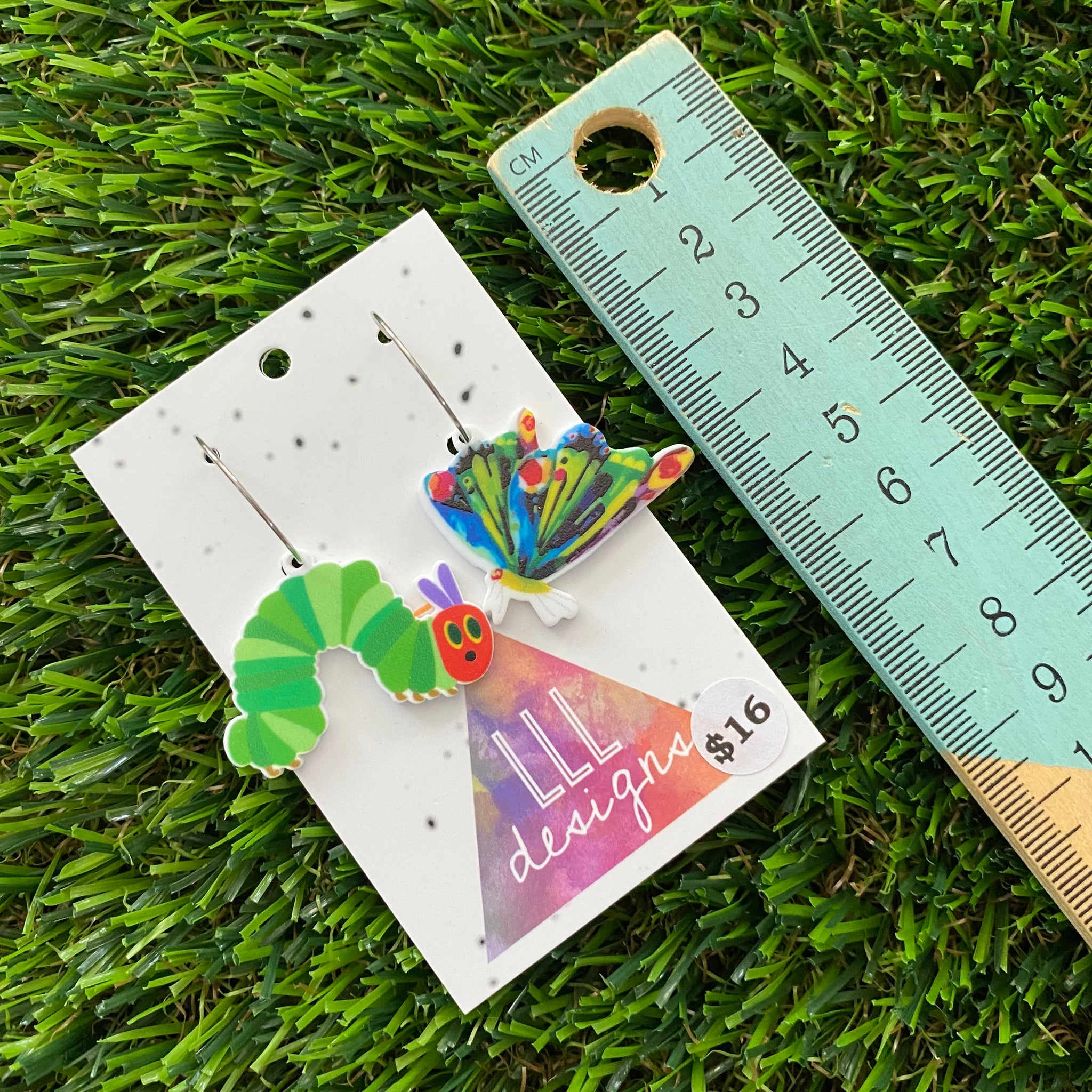 Easter Hoops - Caterpillar and Butterfly Duo with Silver Hoops!