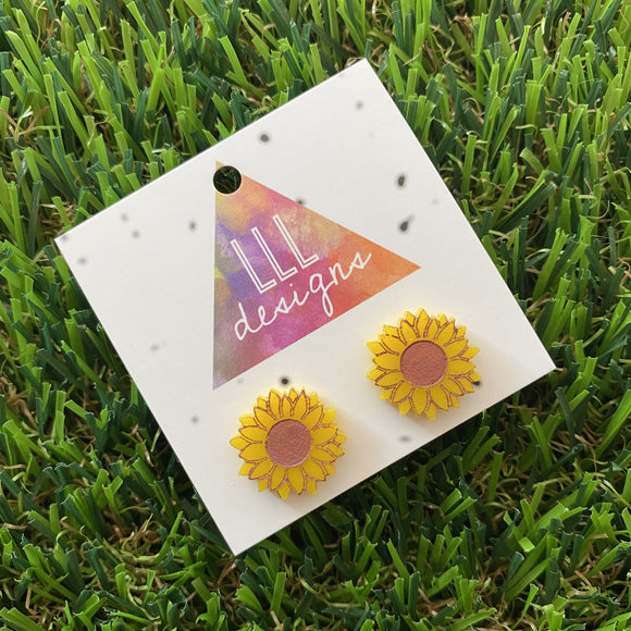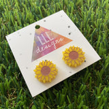 Flower Stud Earrings - Sunflower Stud Earrings Featuring Hand Painted Details!