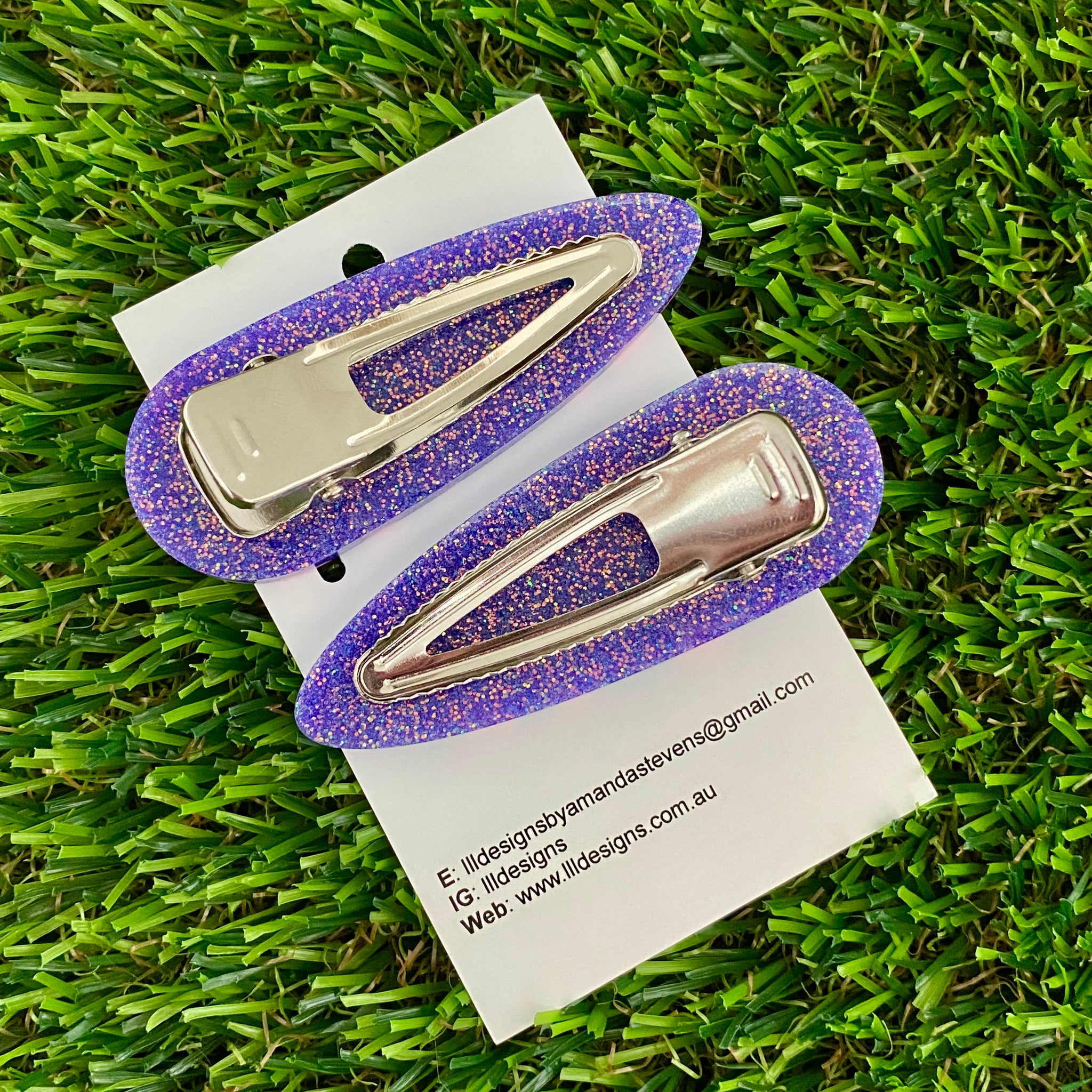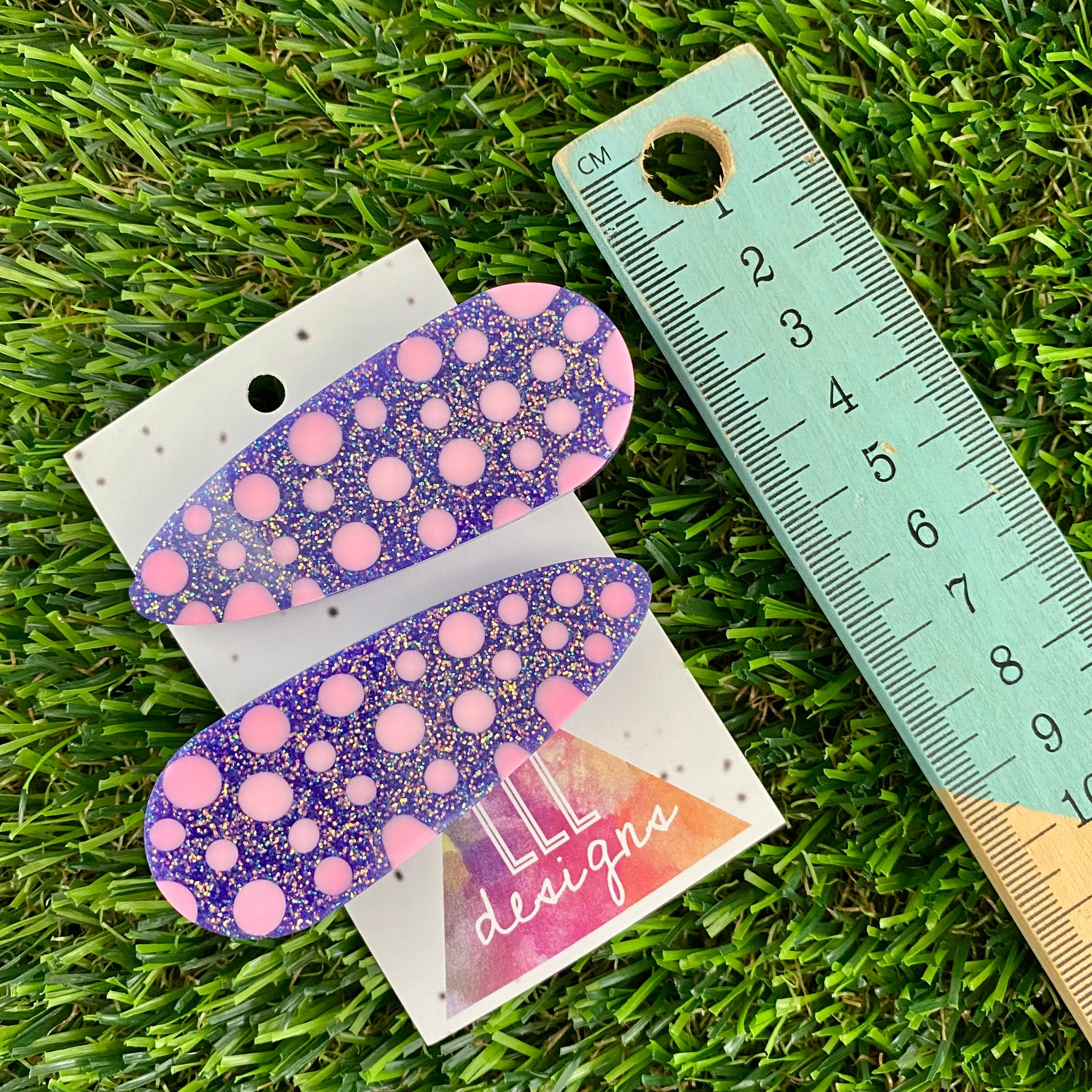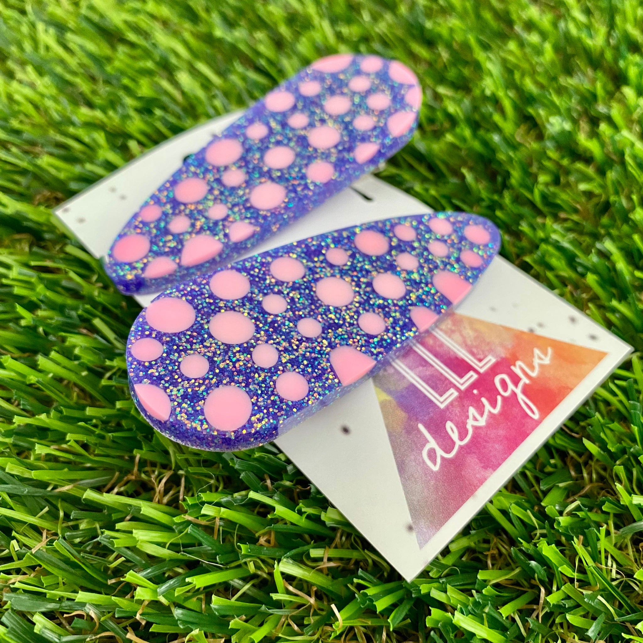 Handmade Resin Hair Clip - Galaxy Purple Hair Clip Pair Featuring Pink Polka Dots!