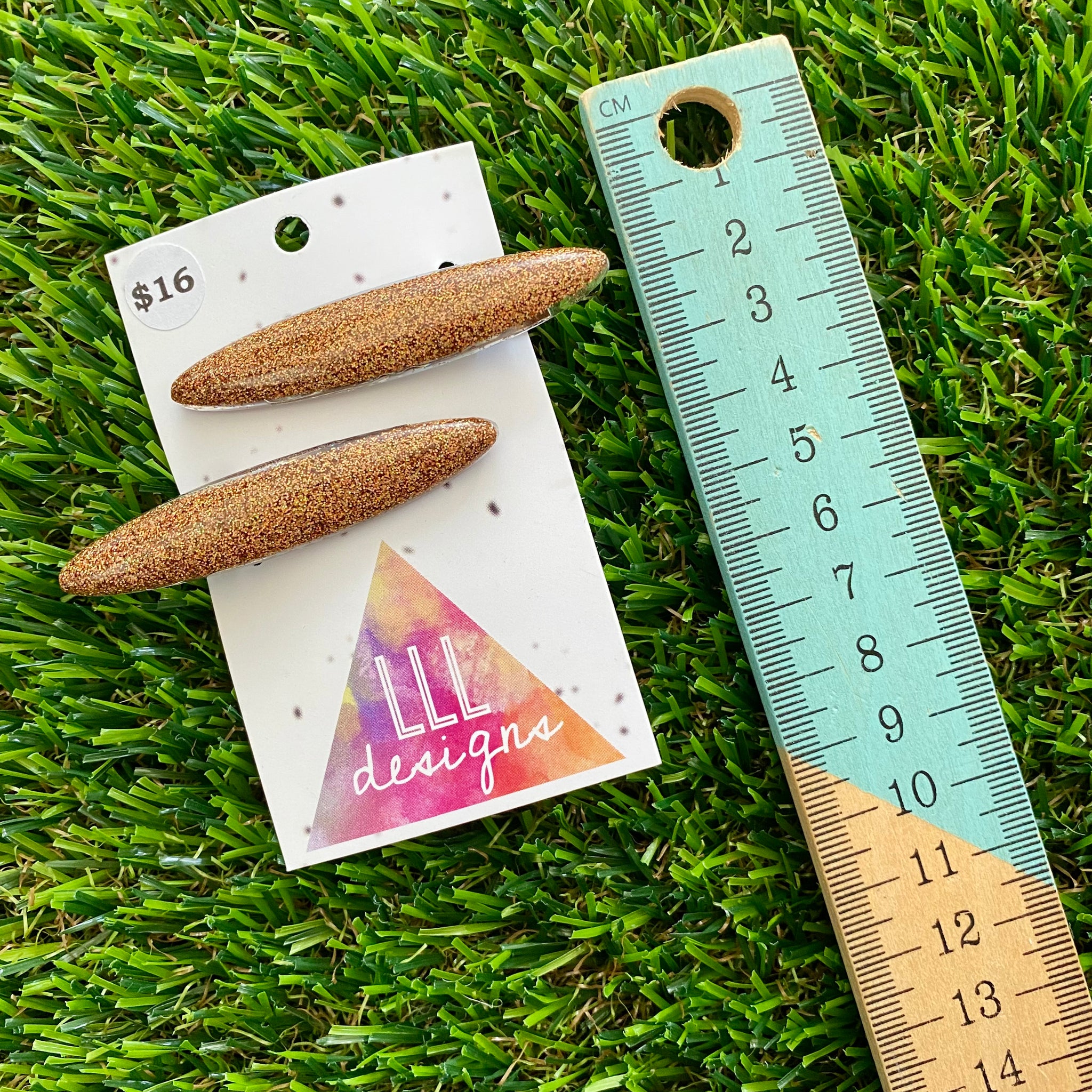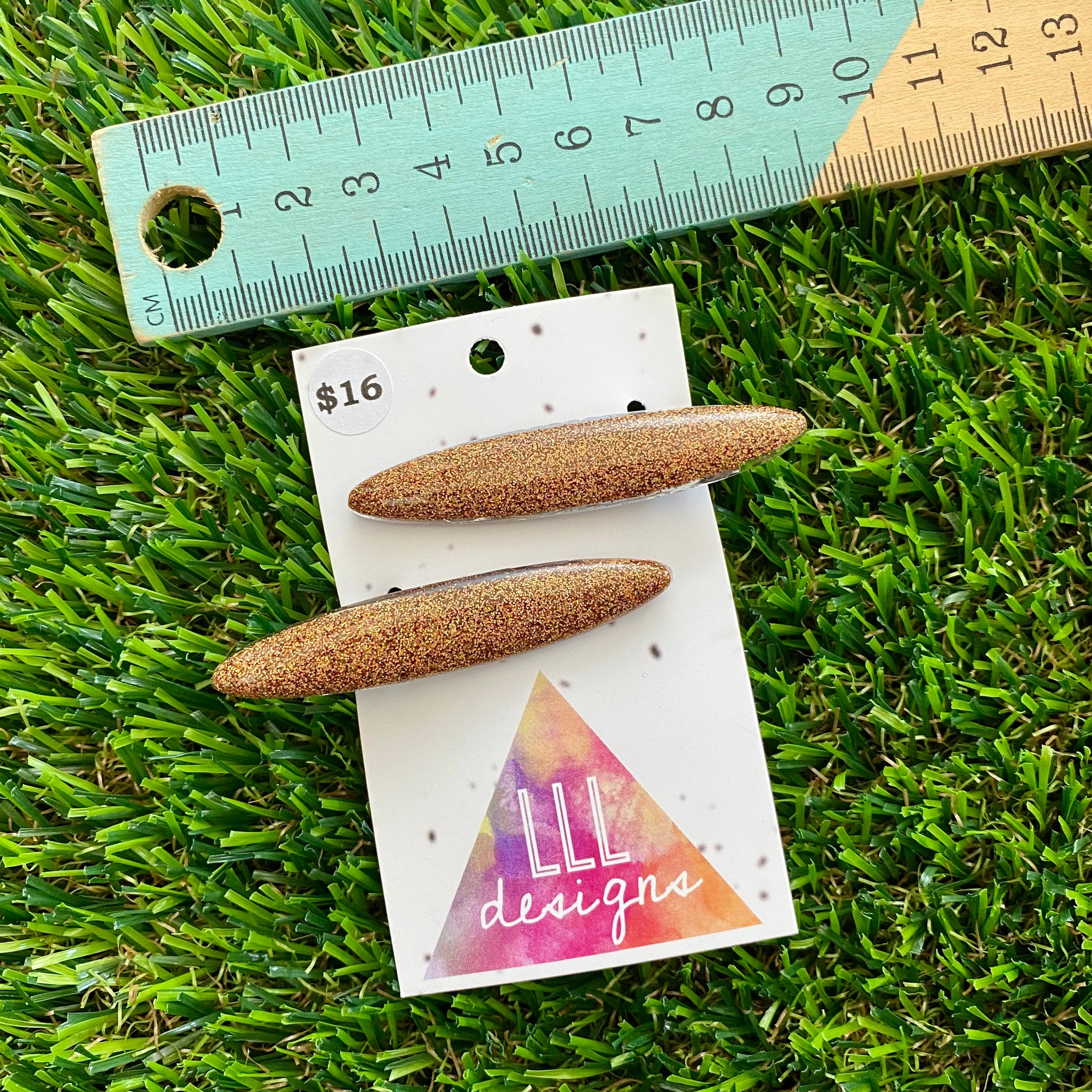 Handmade Resin Hair Clip - Glitter Gold Rounded Edge Bar Hair Clip Pair!