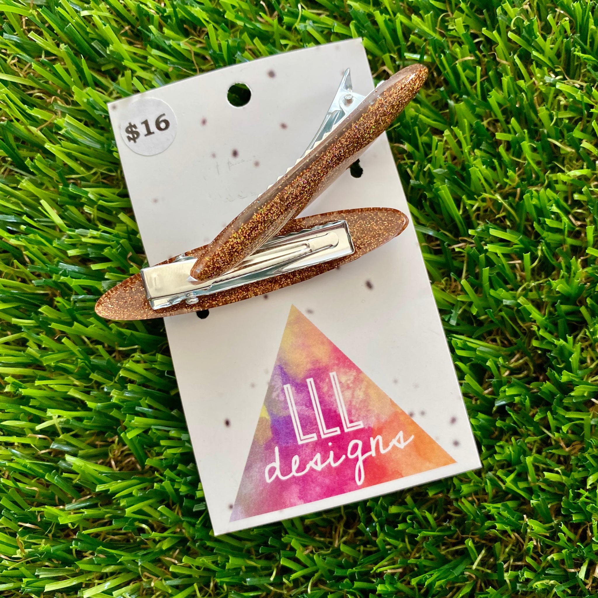 Scroll through photo's to see the size. These hand poured hair clips feature placed sprinkles, allowing for a one of a kind finish.