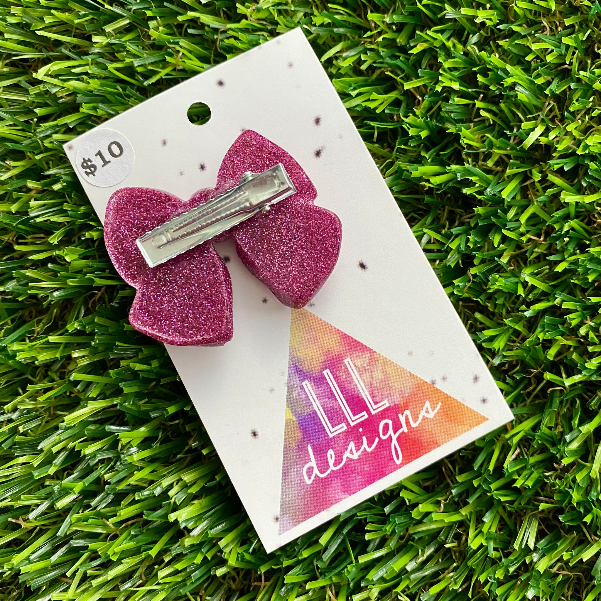 Handmade Resin Hair Clip - Glitter Pink - Large Chunky Bow Hair Clip!