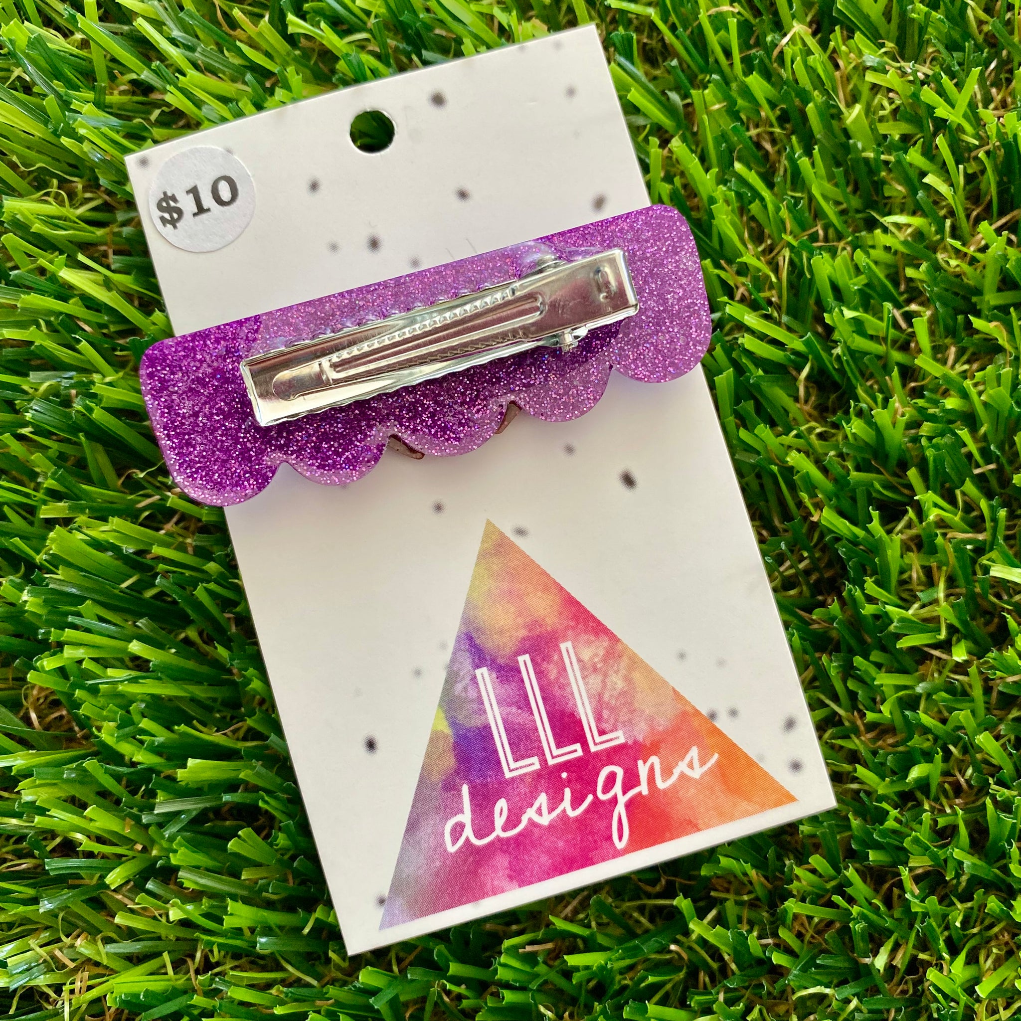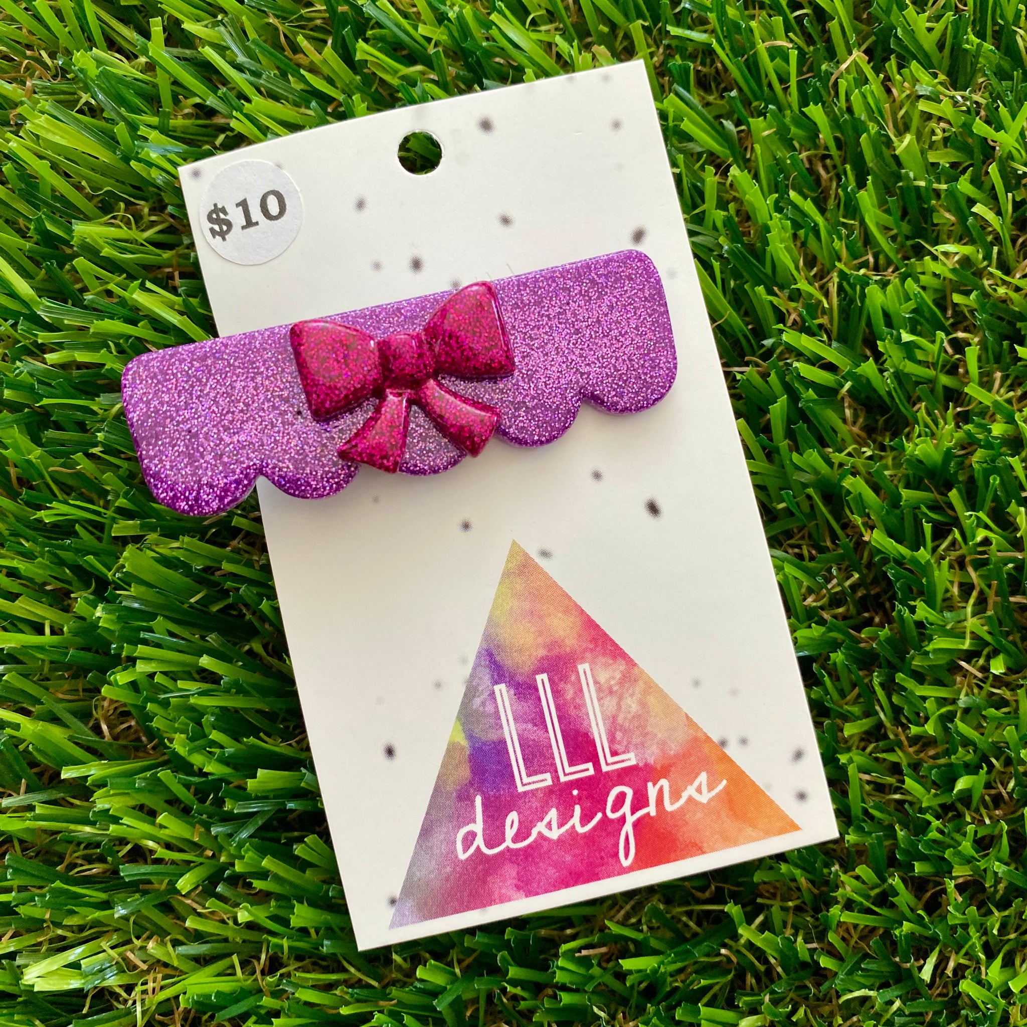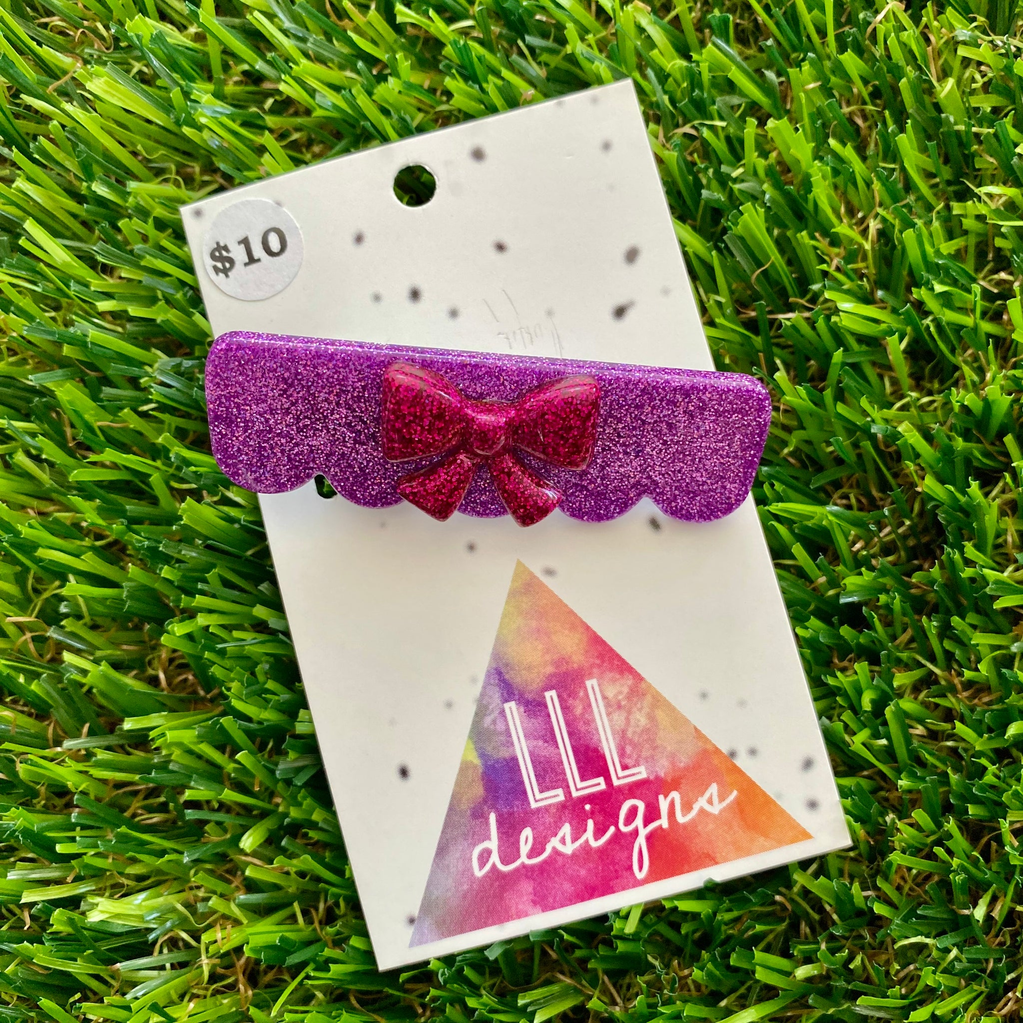 Handmade Resin Hair Clip - Glitter Purple Scalloped Edge Hair Clip Featuring a Glitter Pink Regular Bow!