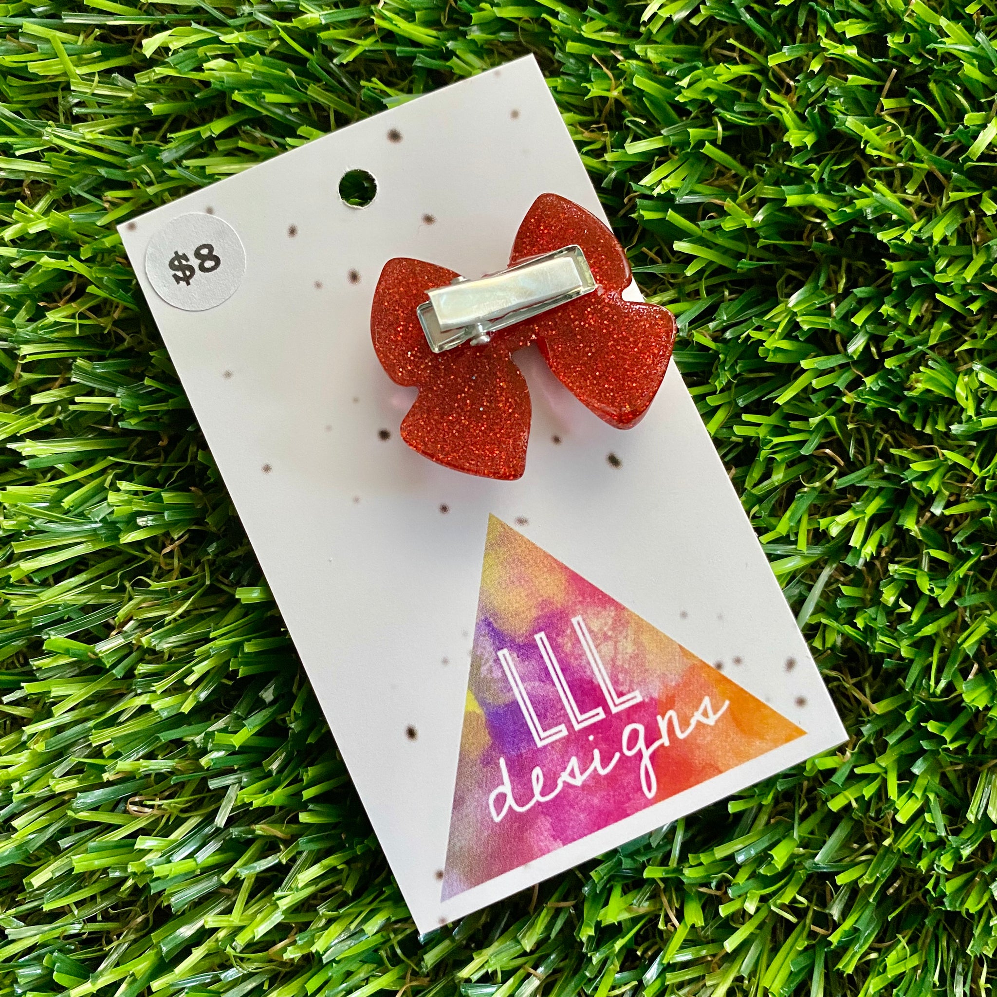 Handmade Resin Hair Clip - Glitter Red - Medium Chunky Bow Hair Clip!