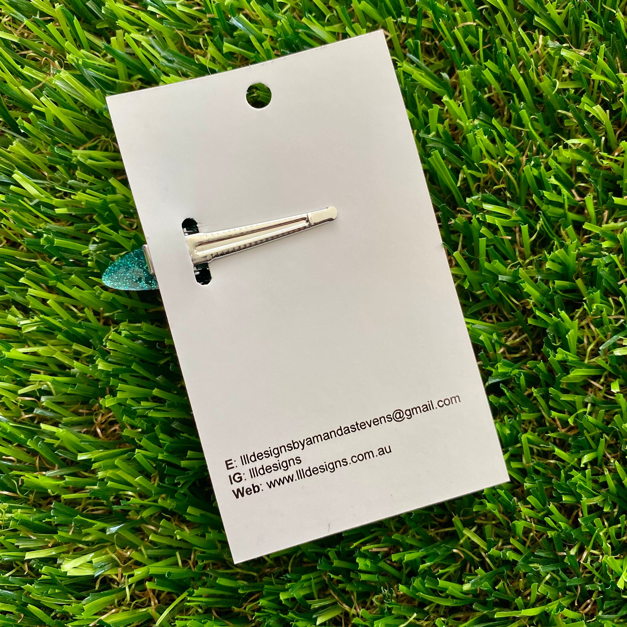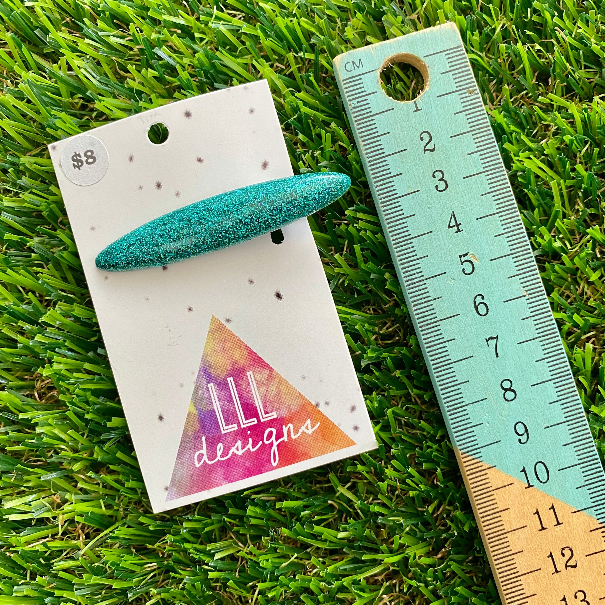 Handmade Resin Hair Clip - Glitter Teal Rounded Edge Bar Hair Clip!