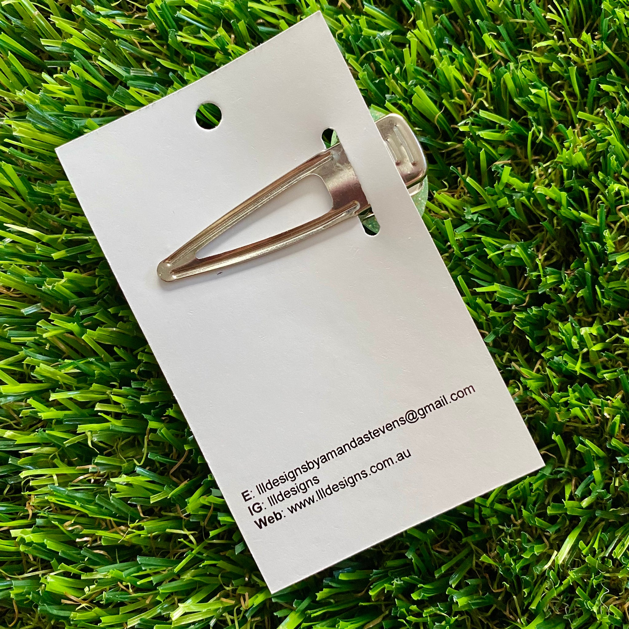 Scroll through photo's to see the size. This hair clip is created by hand poured resin and features a sparkly finish.