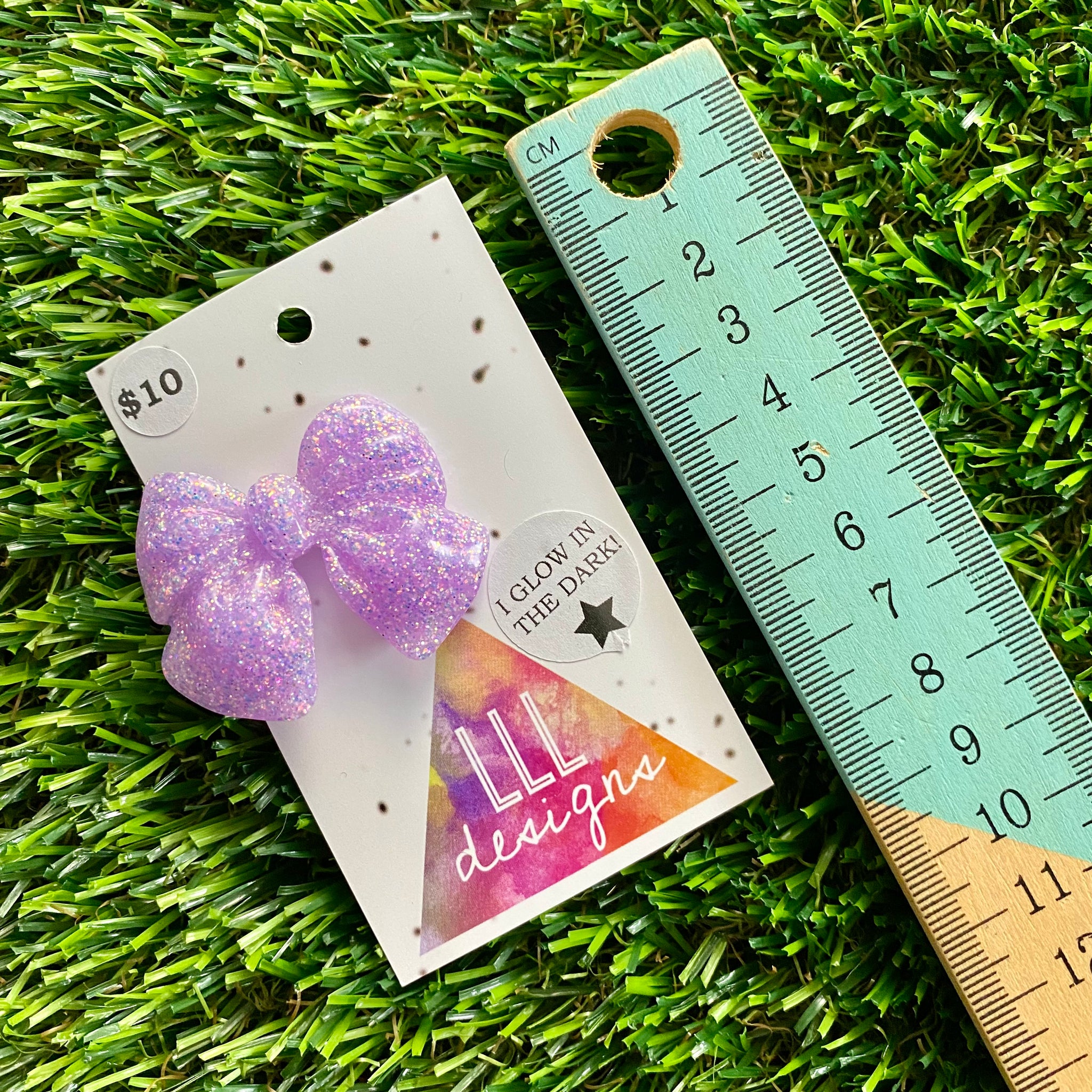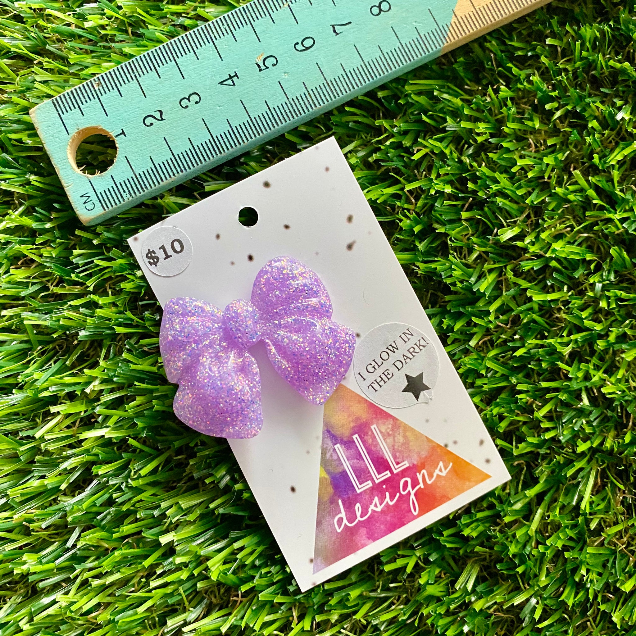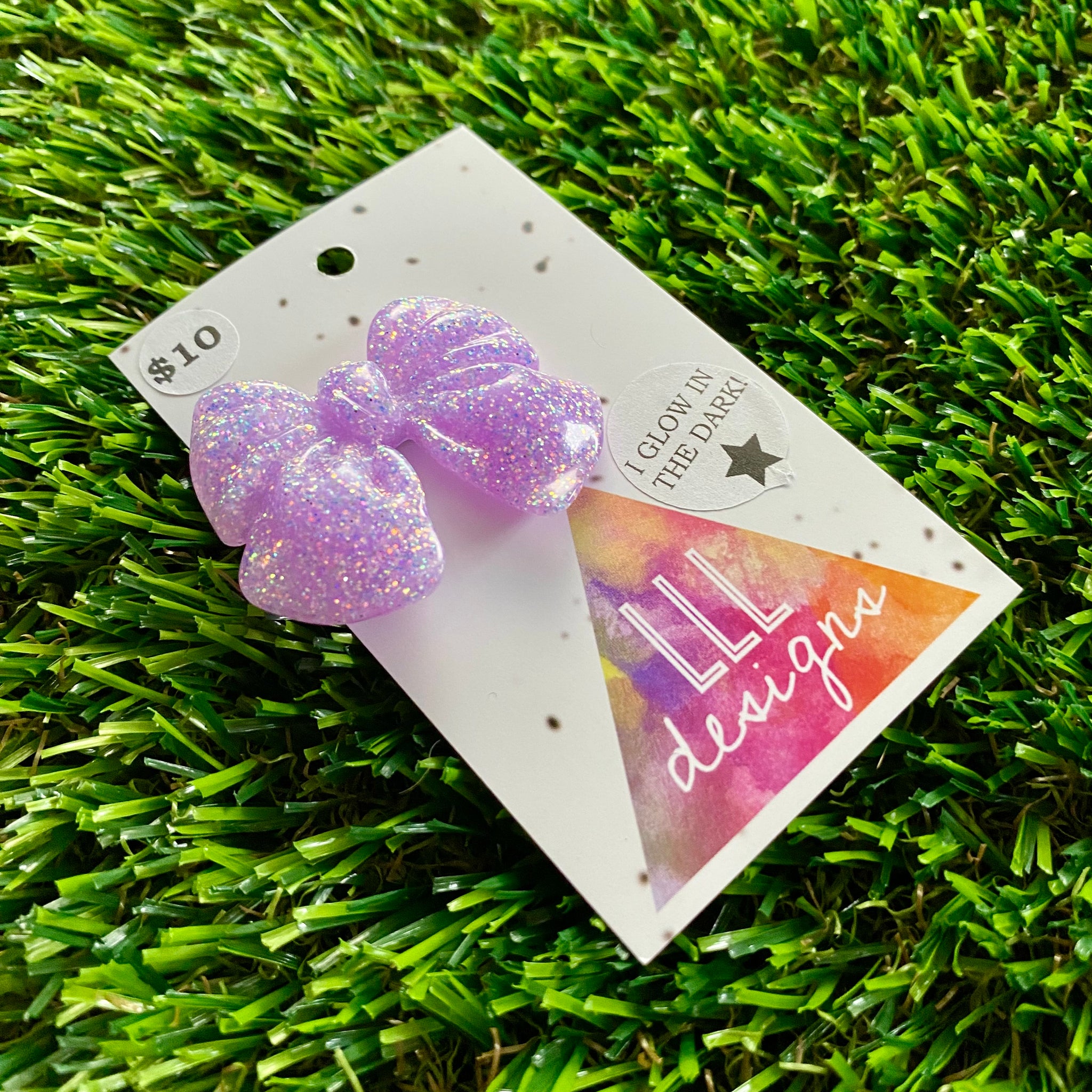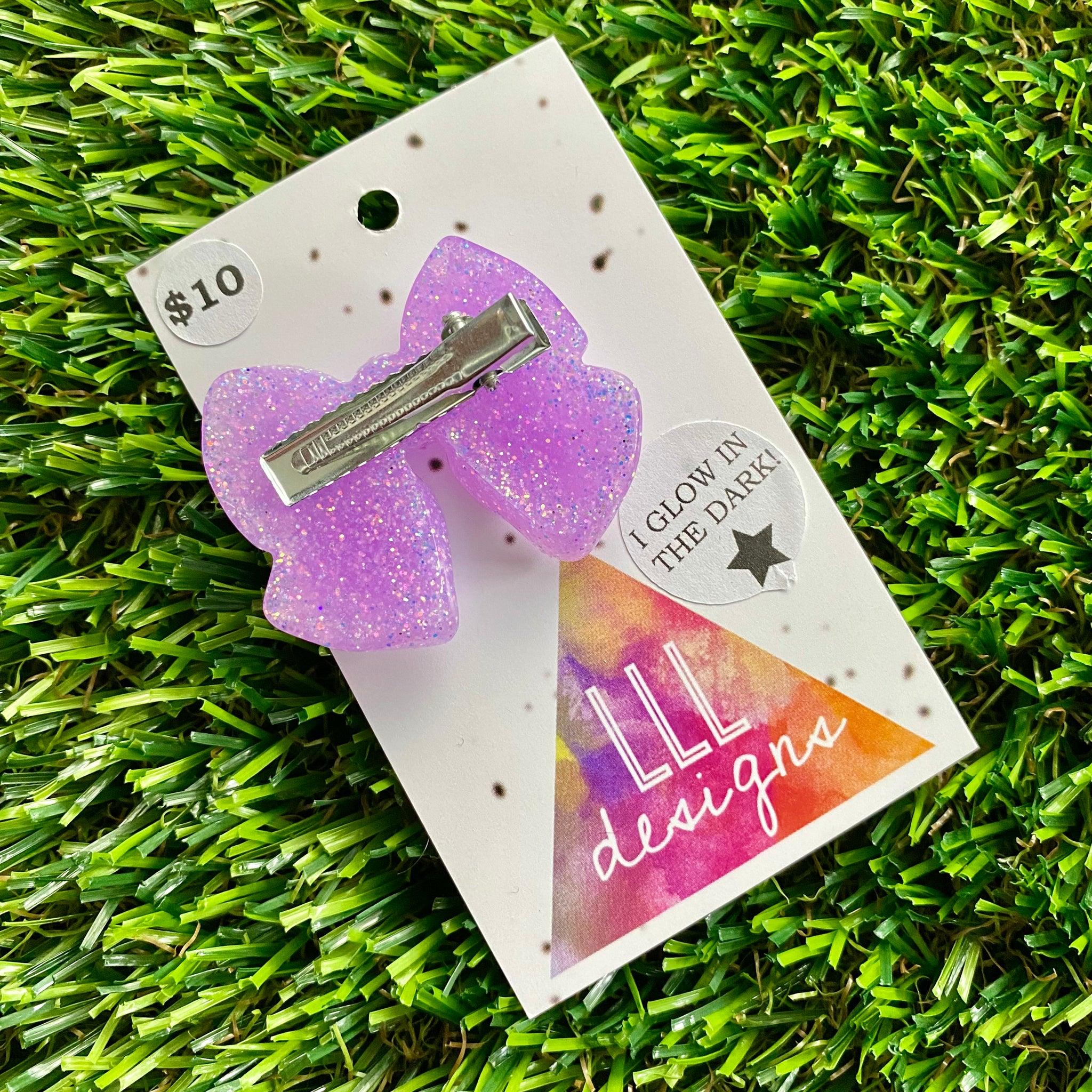 Handmade Resin Hair Clip - Glow In Dark Lavender Glitter - Large Chunky Bow Hair Clip!