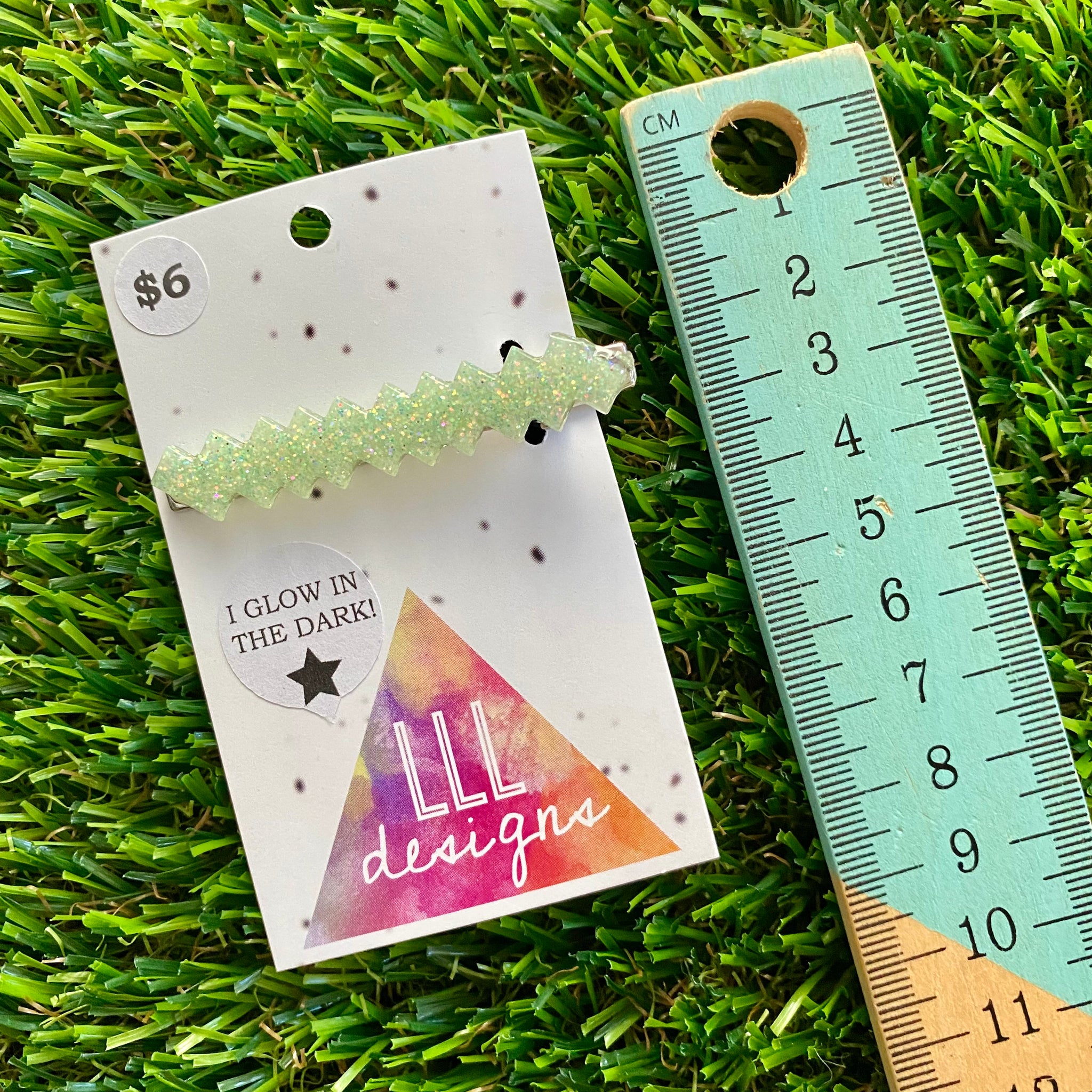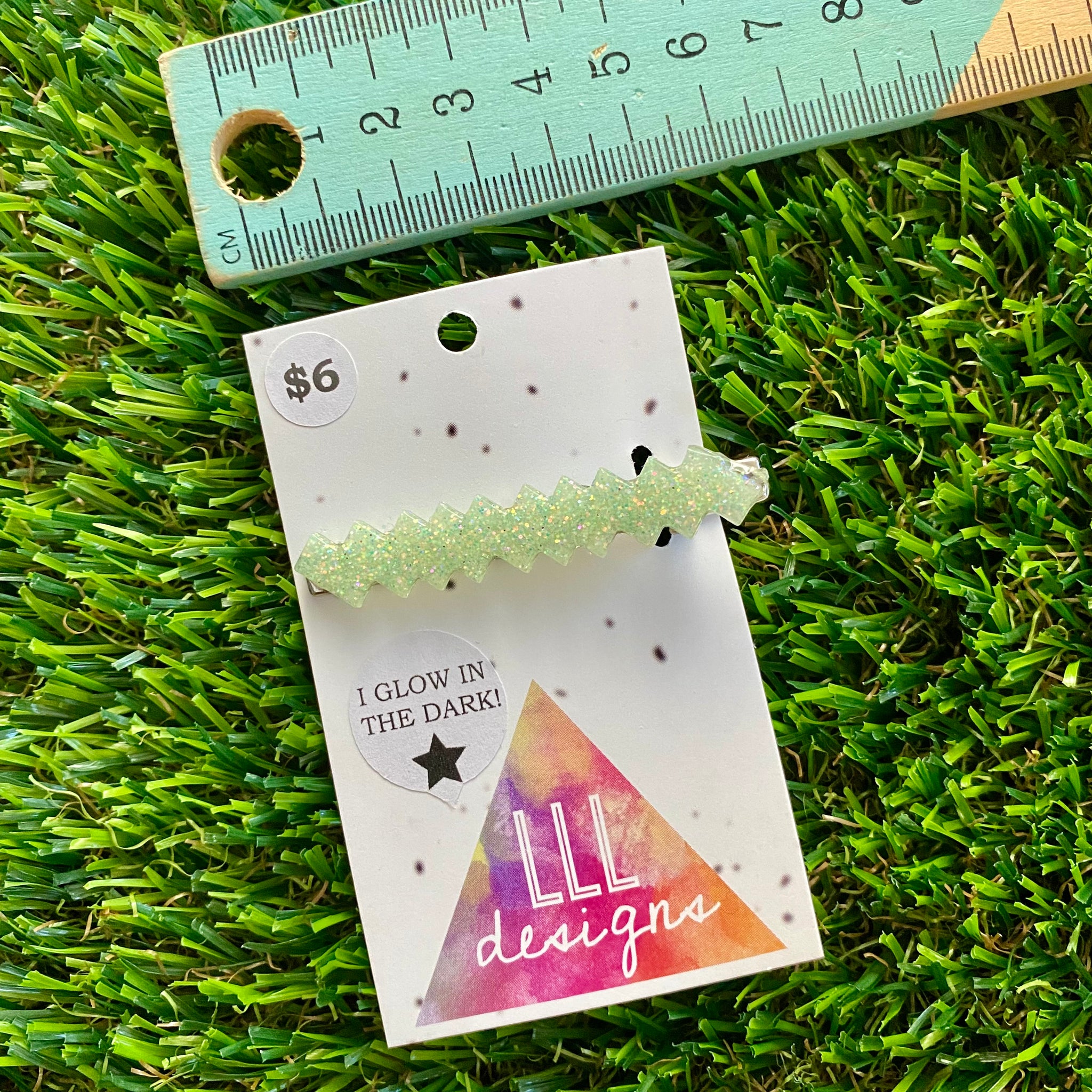 Handmade Resin Hair Clip - Glow In Dark Zig Zag Bar Hair Clip!