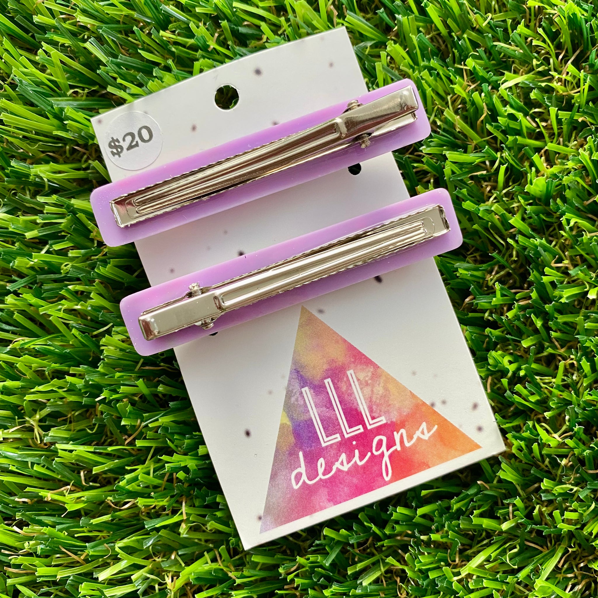 Handmade Resin Hair Clip - Lavender Duel Layered Rainbow Sprinkle Hair Clip Pair Featuring a Squared Edge!