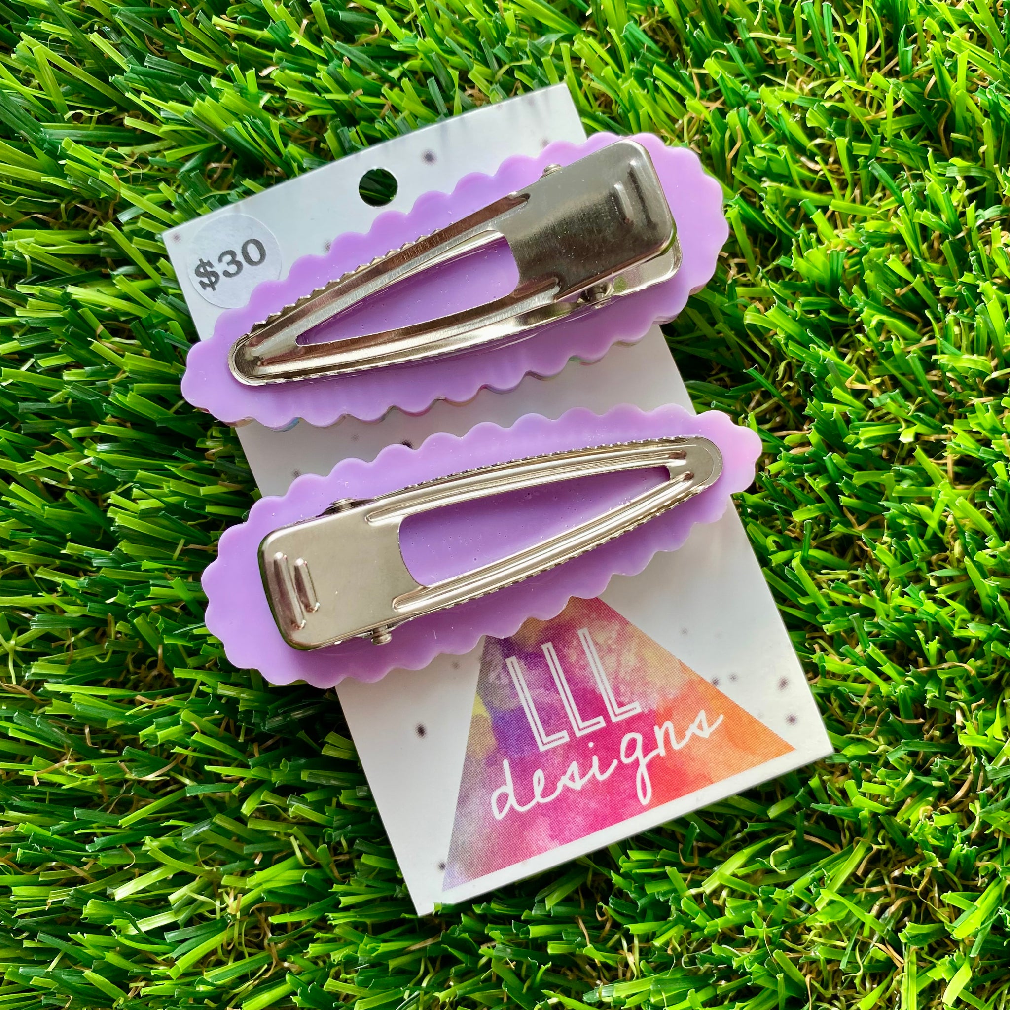 Handmade Resin Hair Clip - Lavender Duel Layered Scalloped Rainbow Sprinkle Hair Clip Pair!