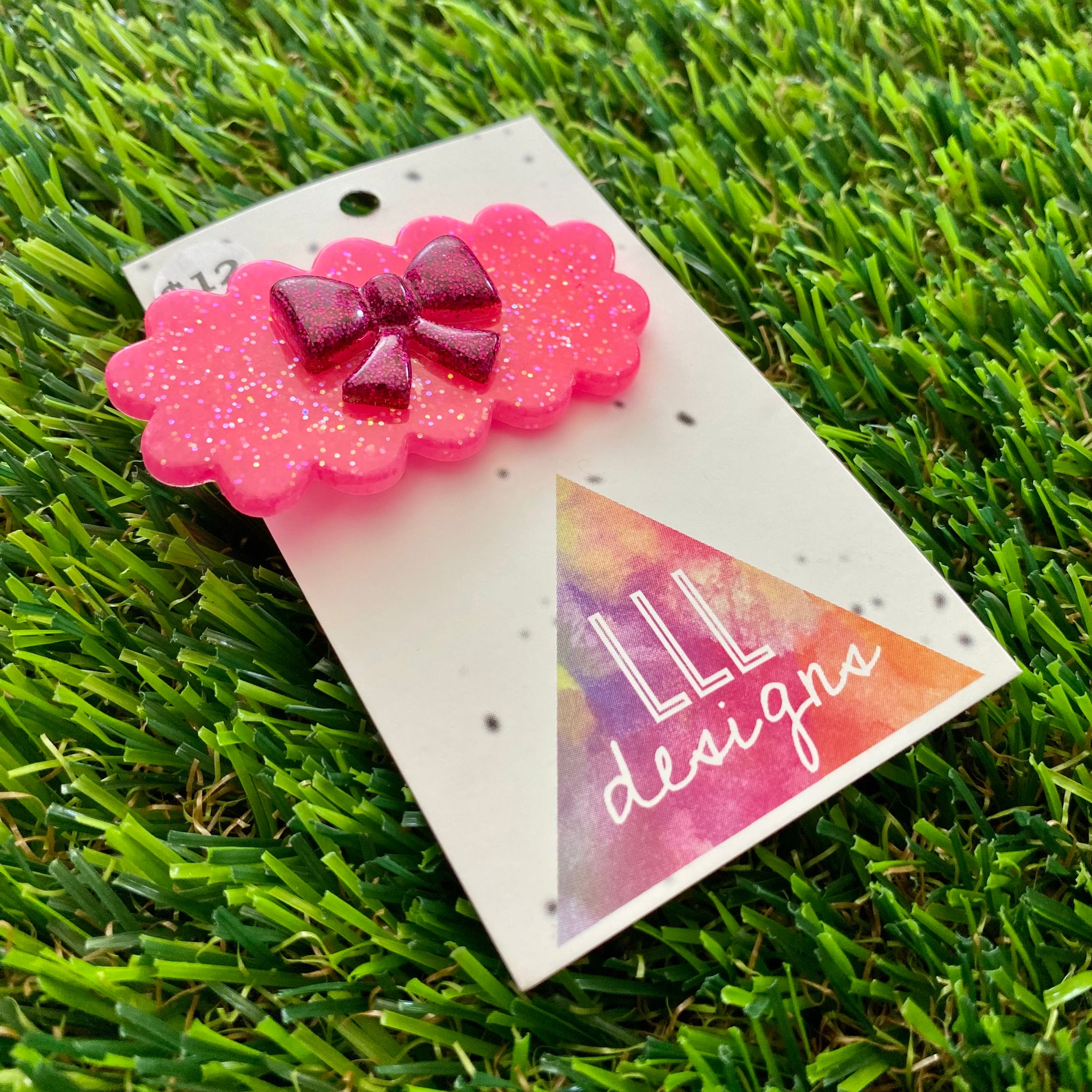 Handmade Resin Hair Clip - Neon Glitter Pink Puffy Cloud Hair Clip Featuring a Pink Bow!
