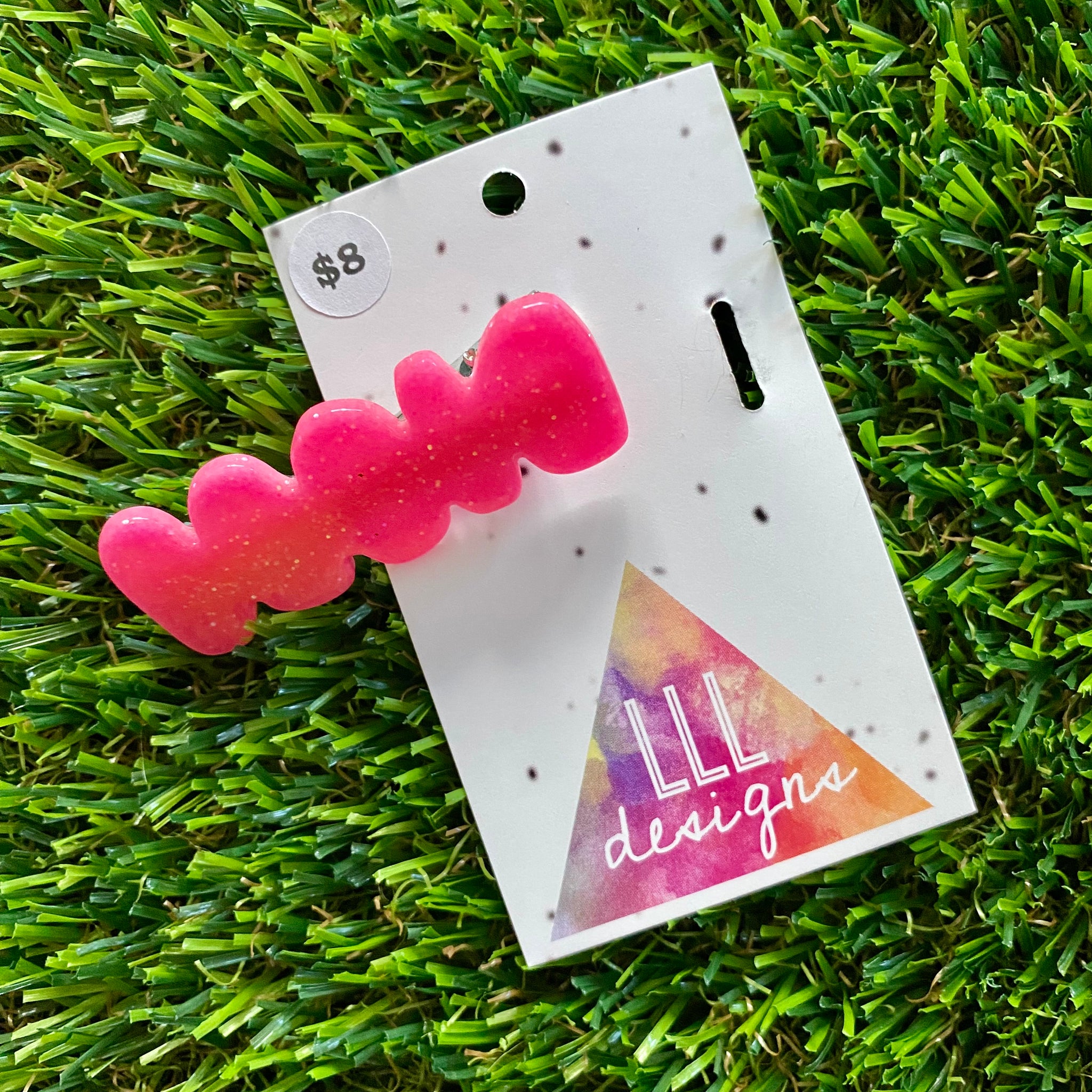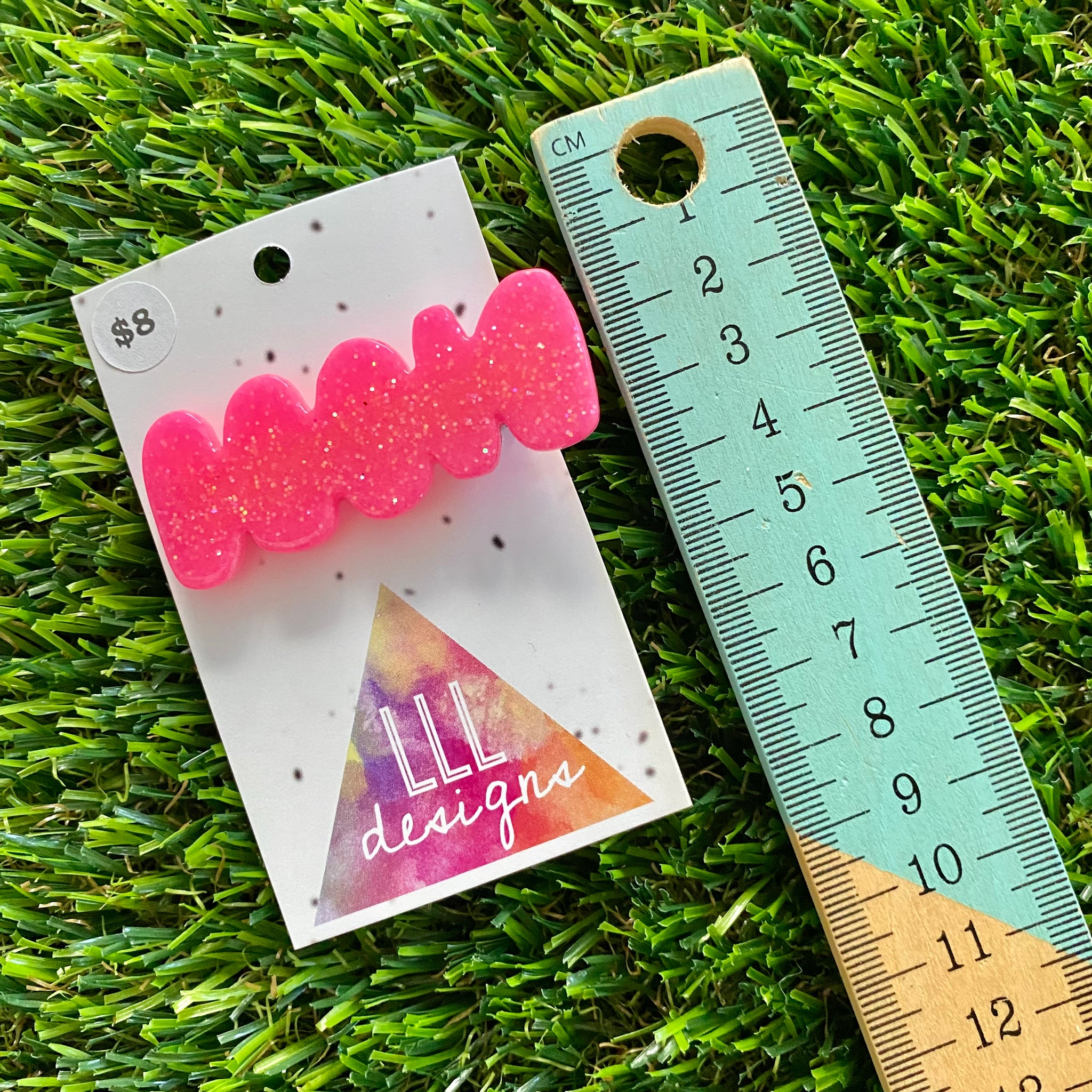 Handmade Resin Hair Clip - Neon Glitter Pink Squiggle Hair Clip!