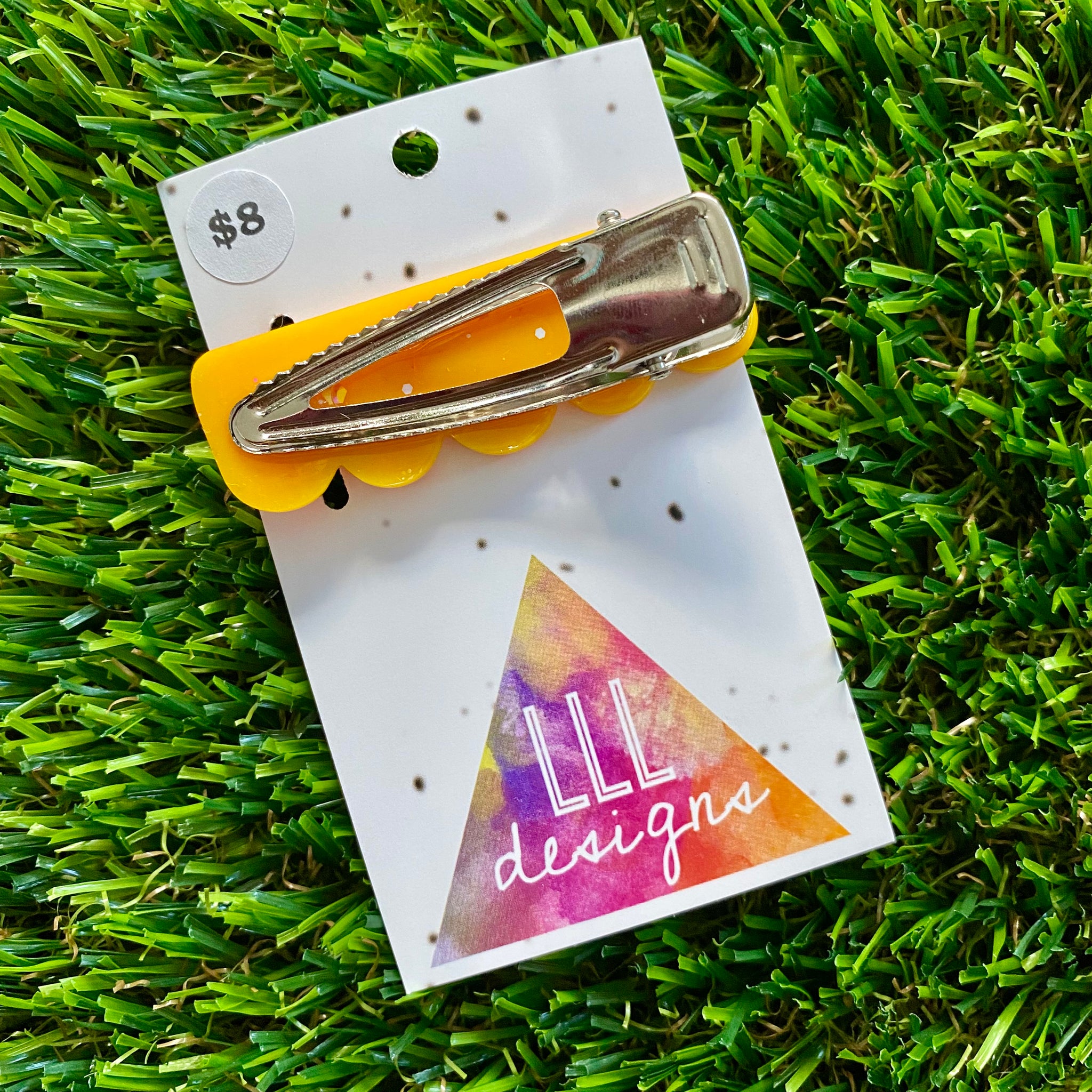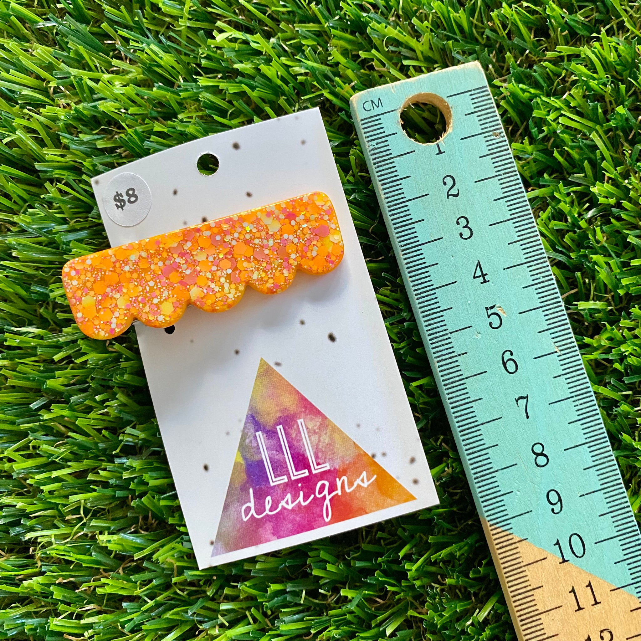 Handmade Resin Hair Clip - Orange Multi Glitter Scalloped Edge Hair Clip!