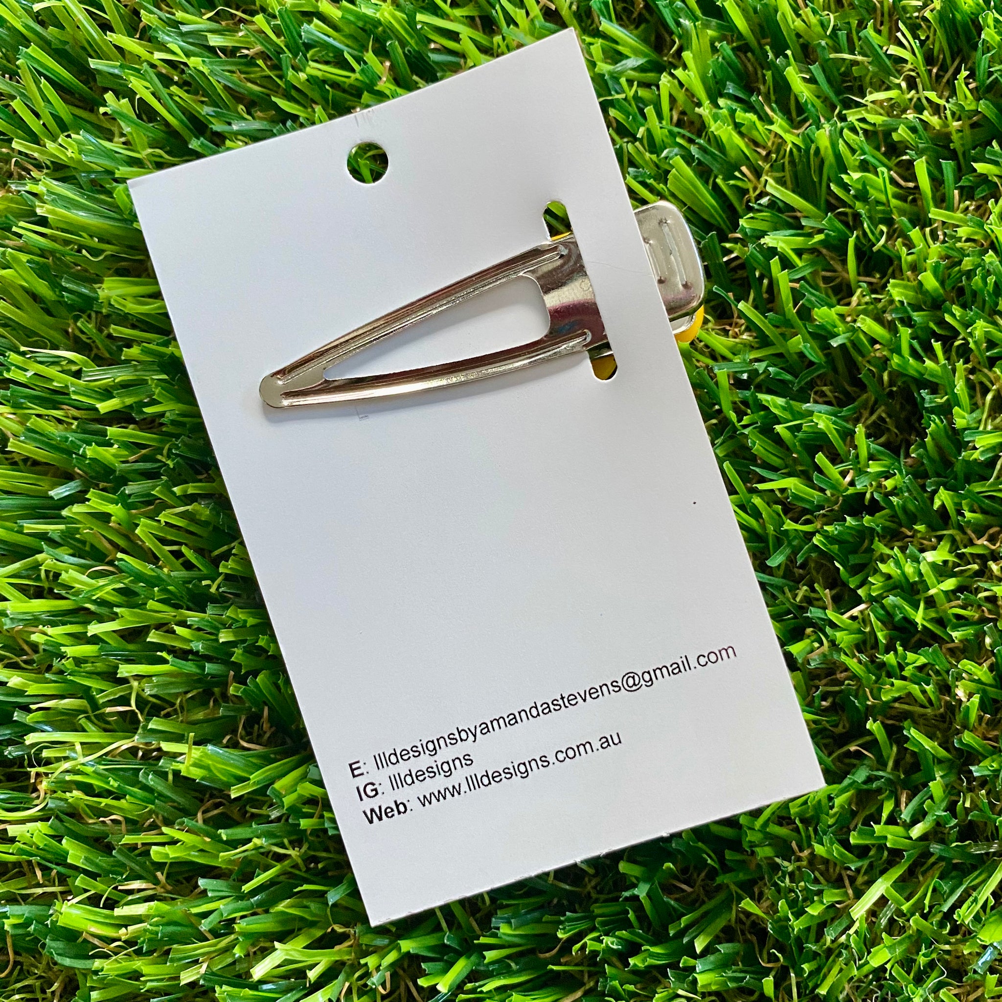 Scroll through photo's to see the size. This hair clip is created by hand poured resin and features a sparkly finish.