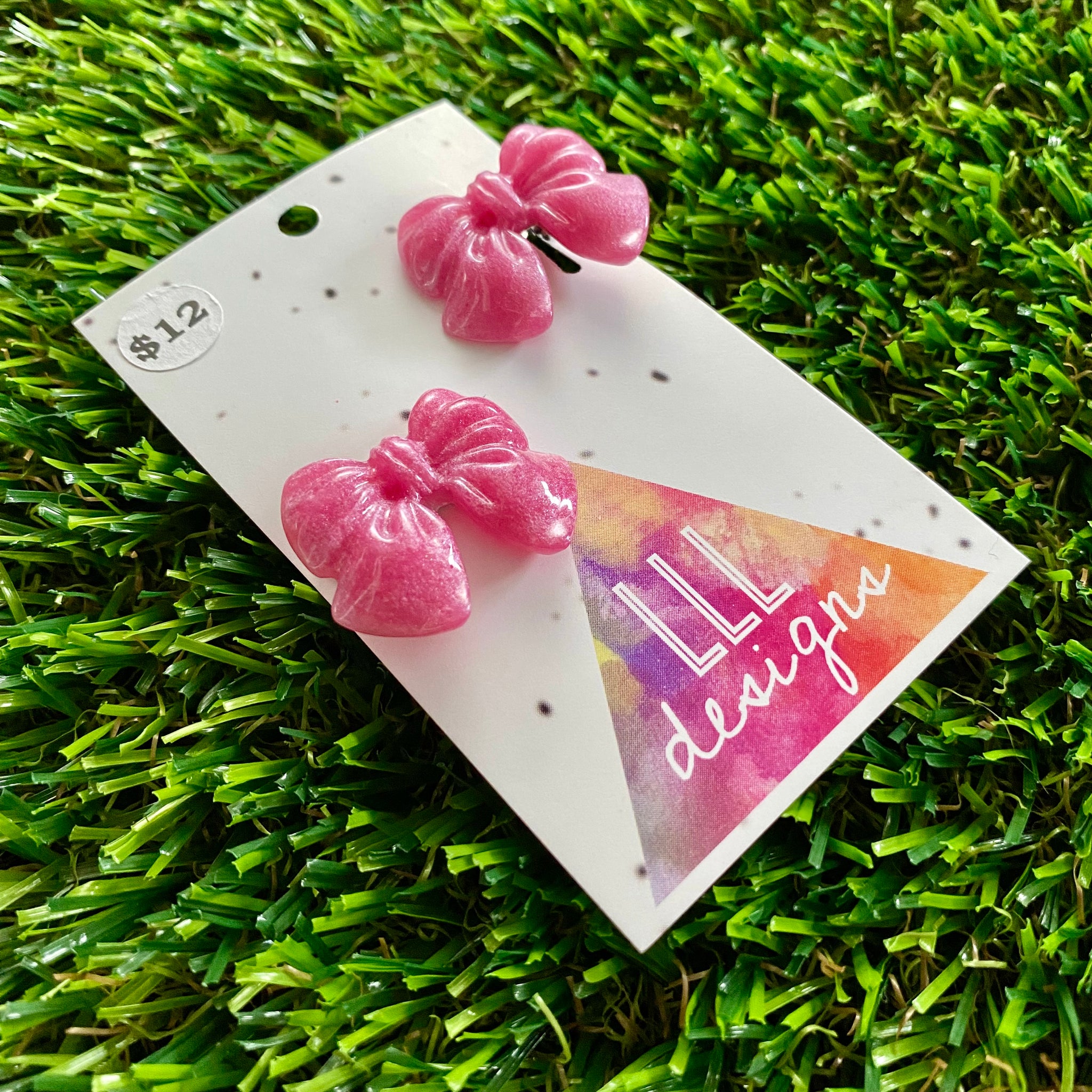 Handmade Resin Hair Clip - Pale Pink - Small Chunky Bow Hair Clip Pair!