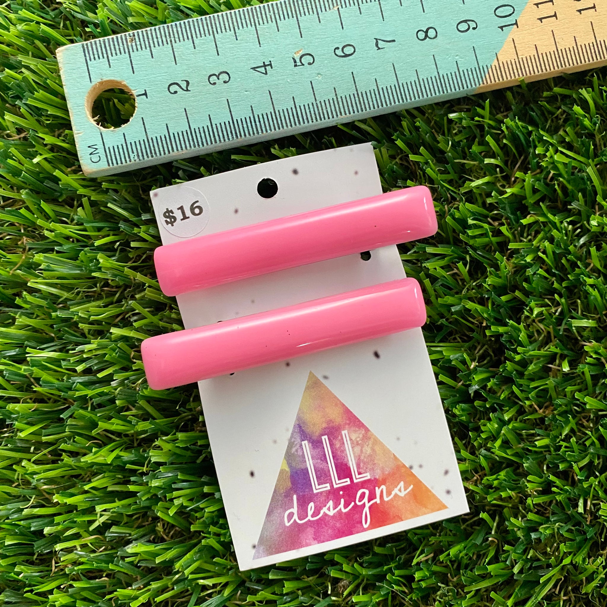 Handmade Resin Hair Clip - Pale Pink Squared Edge Bar Hair Clip Pair!
