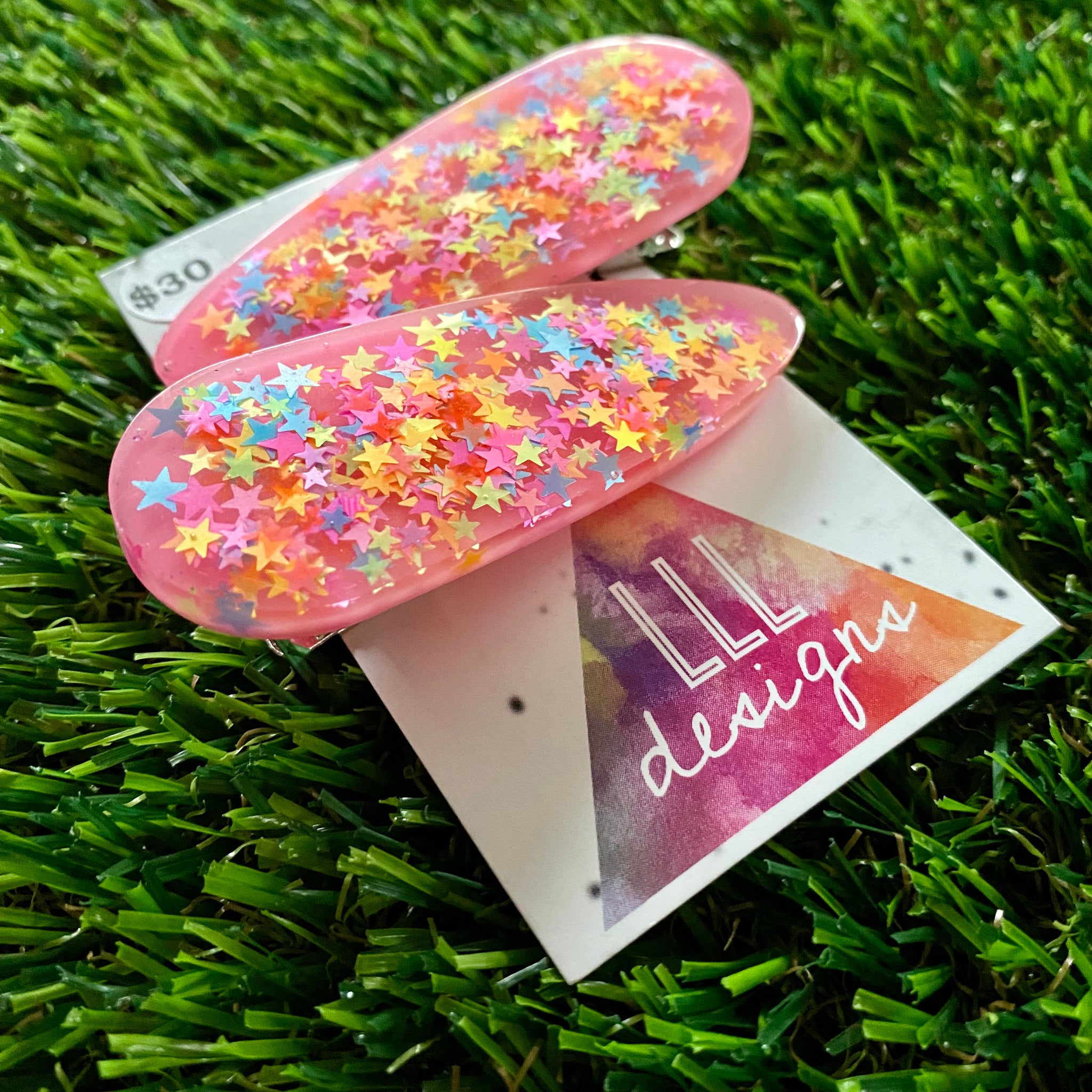 Handmade Resin Hair Clip - Pink Duel Layered Rainbow Star Confetti Hair Clip Pair!