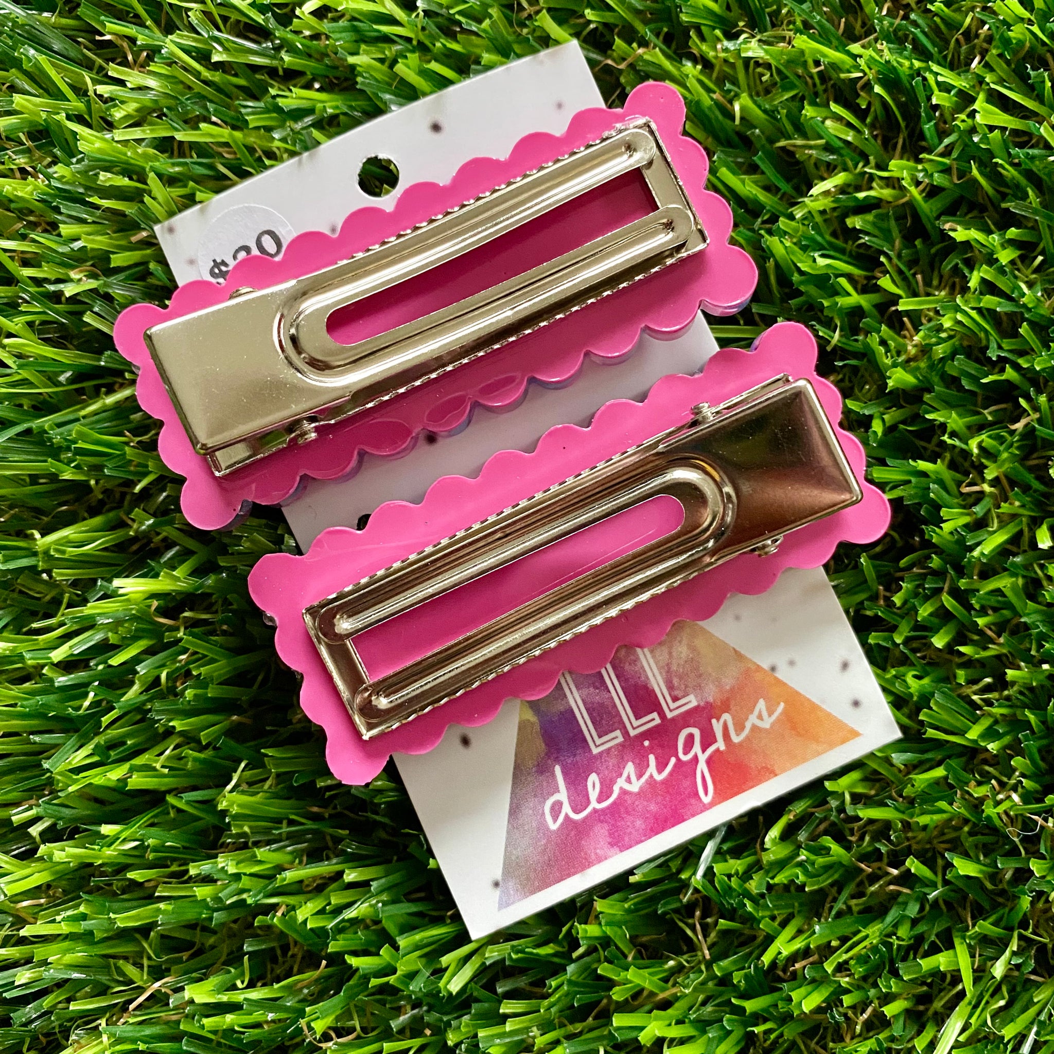 Handmade Resin Hair Clip - Pink Sprinkle Rectangular Scalloped Hair Clip Pair!