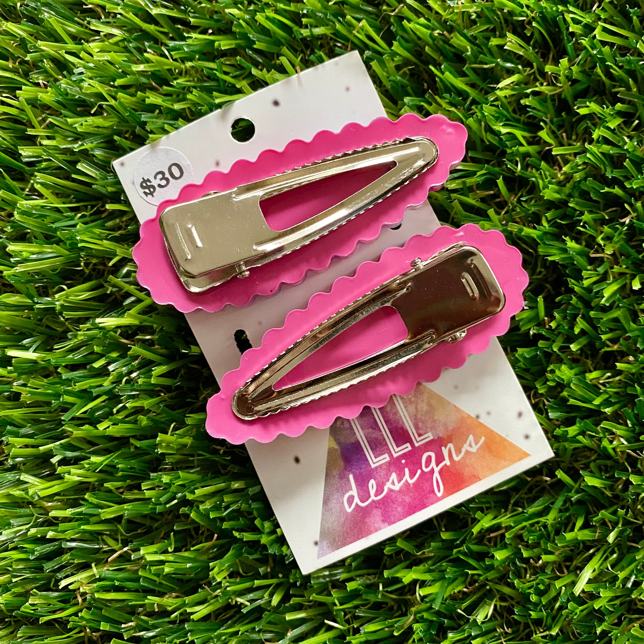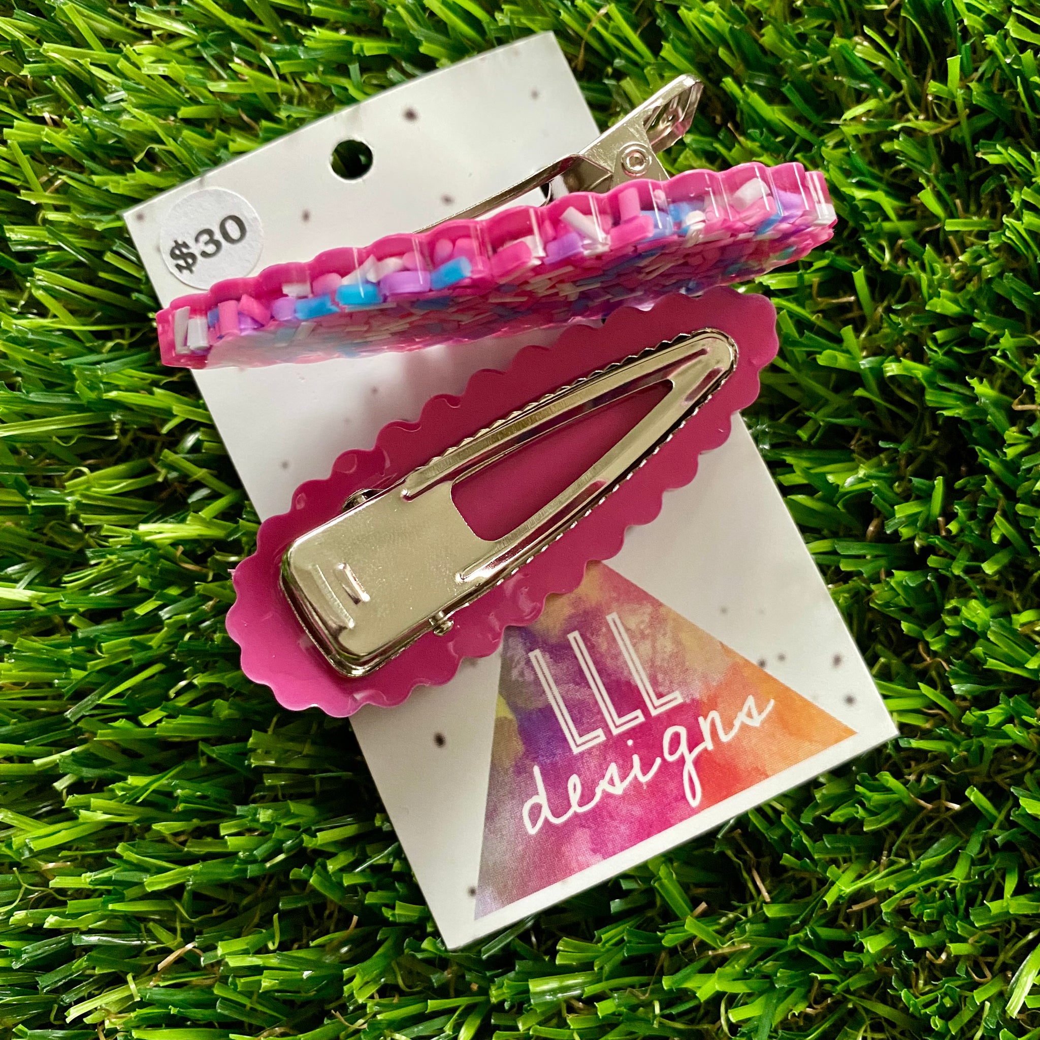 Handmade Resin Hair Clip - Pink Sprinkle Scalloped Hair Clip Pair!