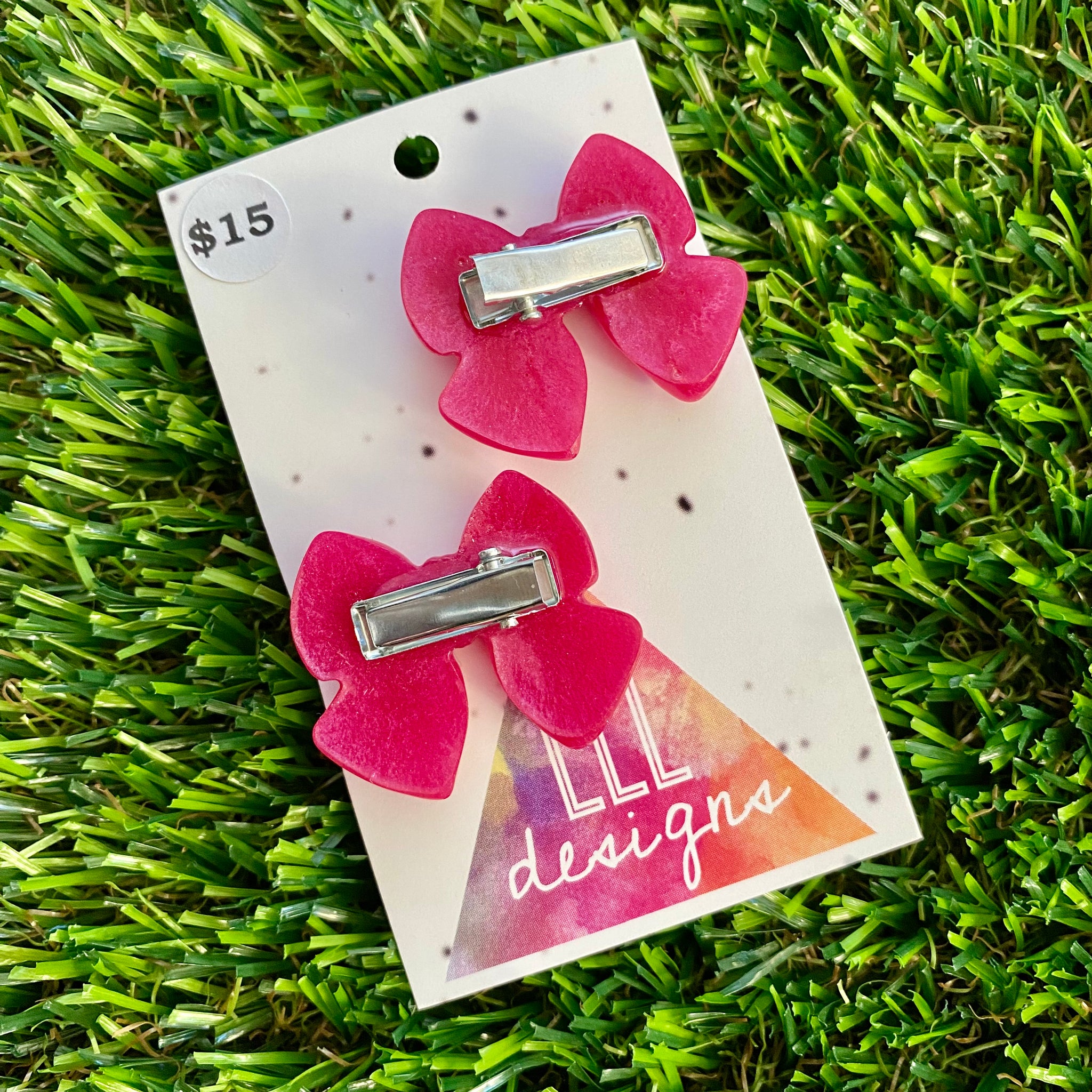 Handmade Resin Hair Clip - Regular Pink - Medium Chunky Bow Hair Clip Pair!