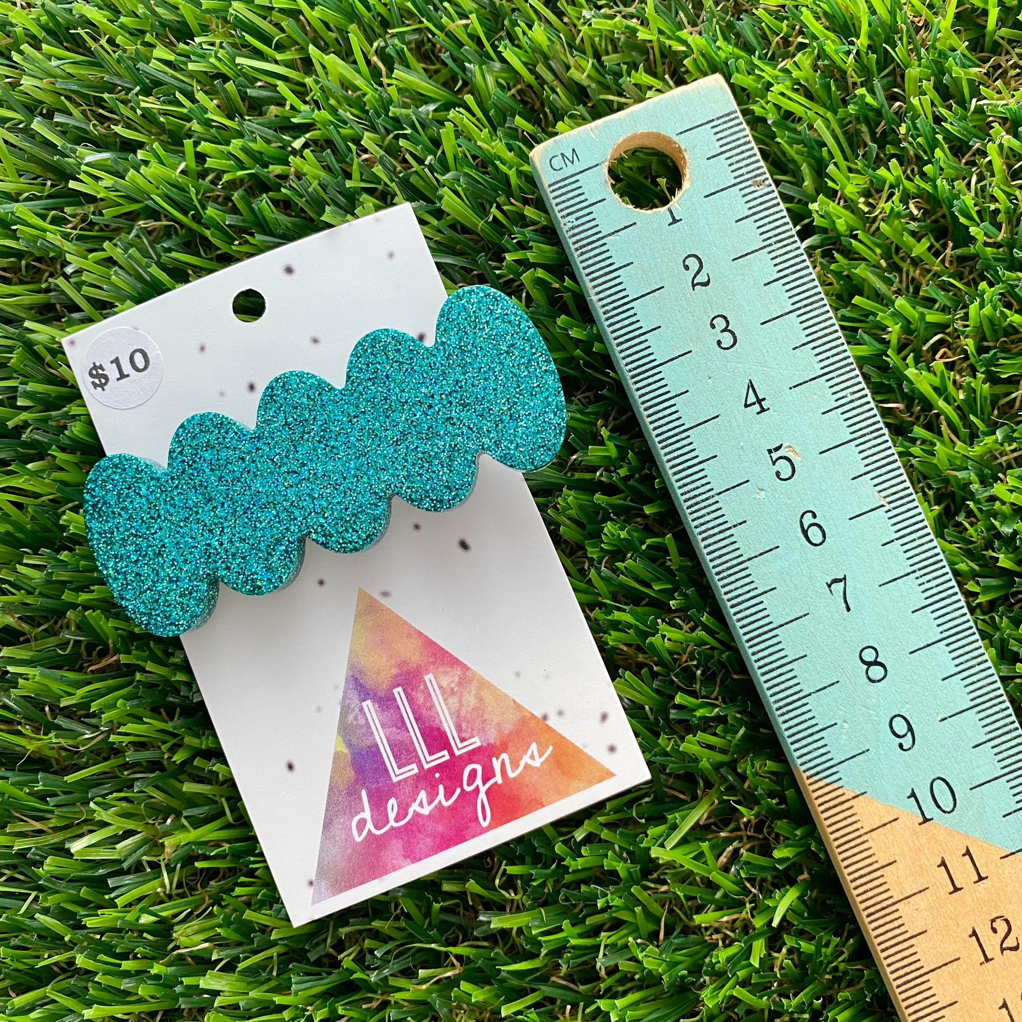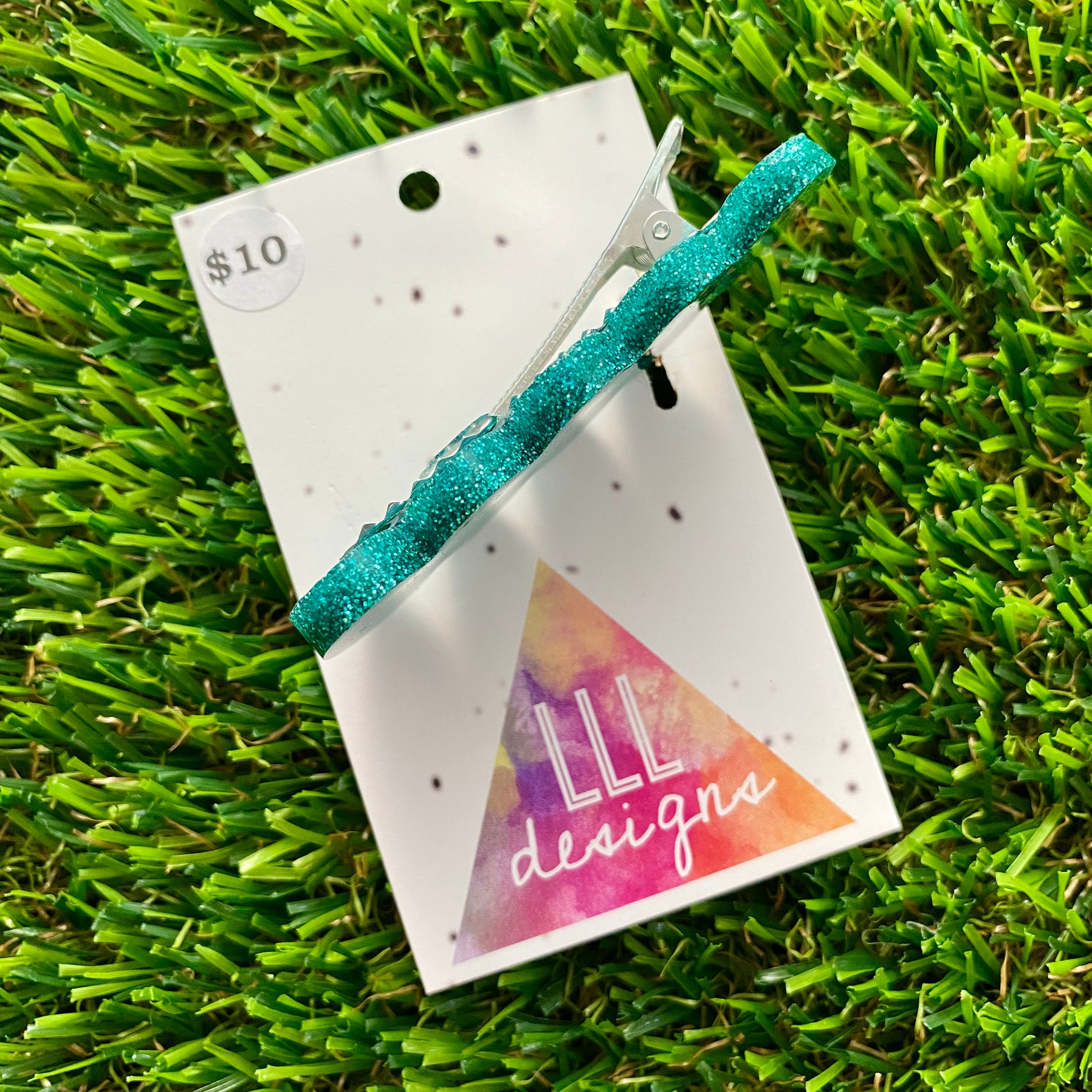 Handmade Resin Hair Clip - Teal Glitter Bubble Hair Clip!
