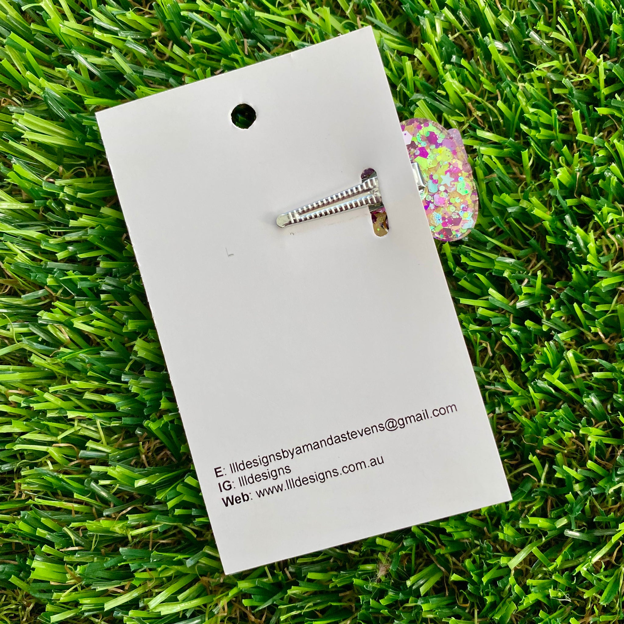 Scroll through photo's to see the size. These hand poured hair clips feature placed sprinkles, allowing for a one of a kind finish.