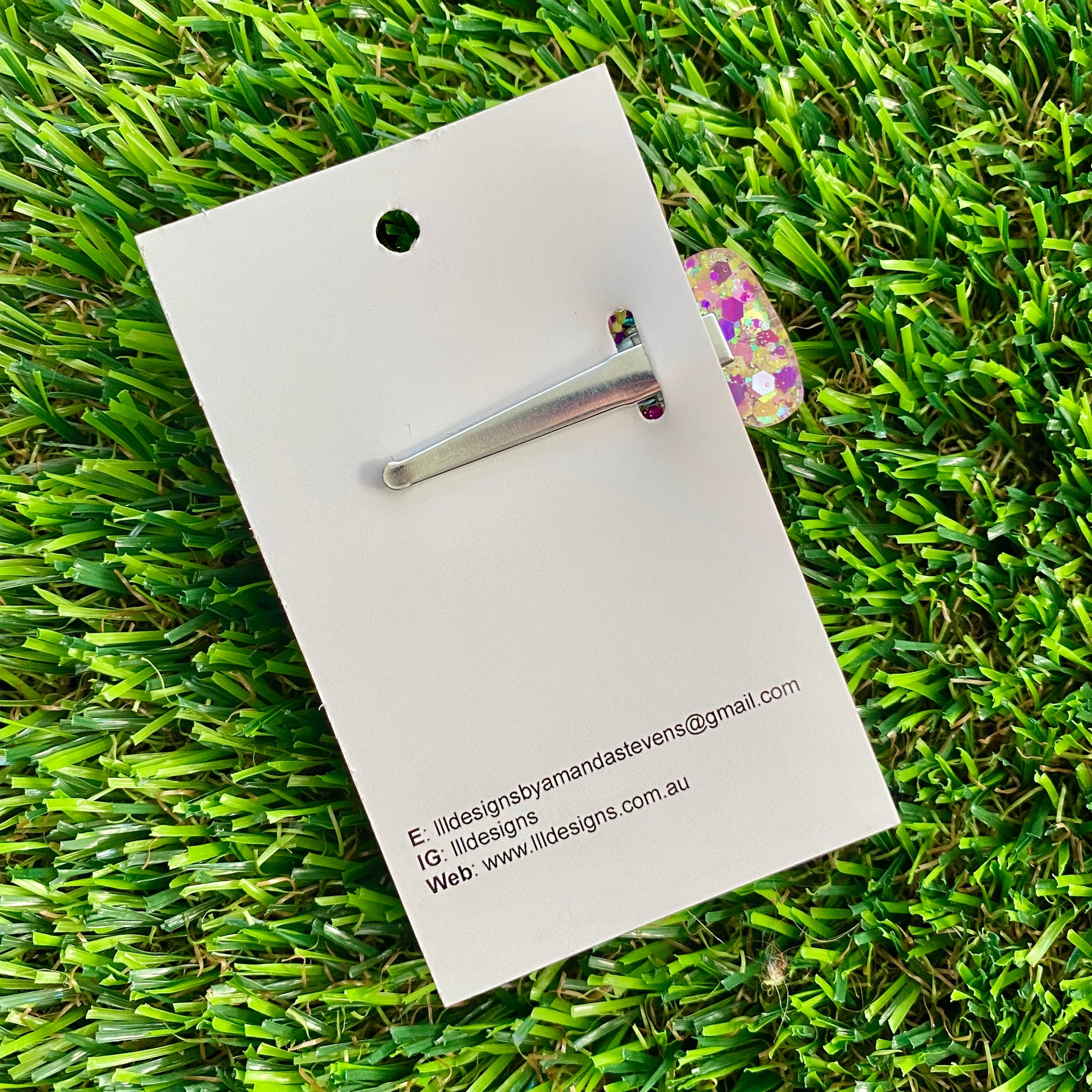 Scroll through photo's to see the size. These hand poured hair clips feature placed sprinkles, allowing for a one of a kind finish.