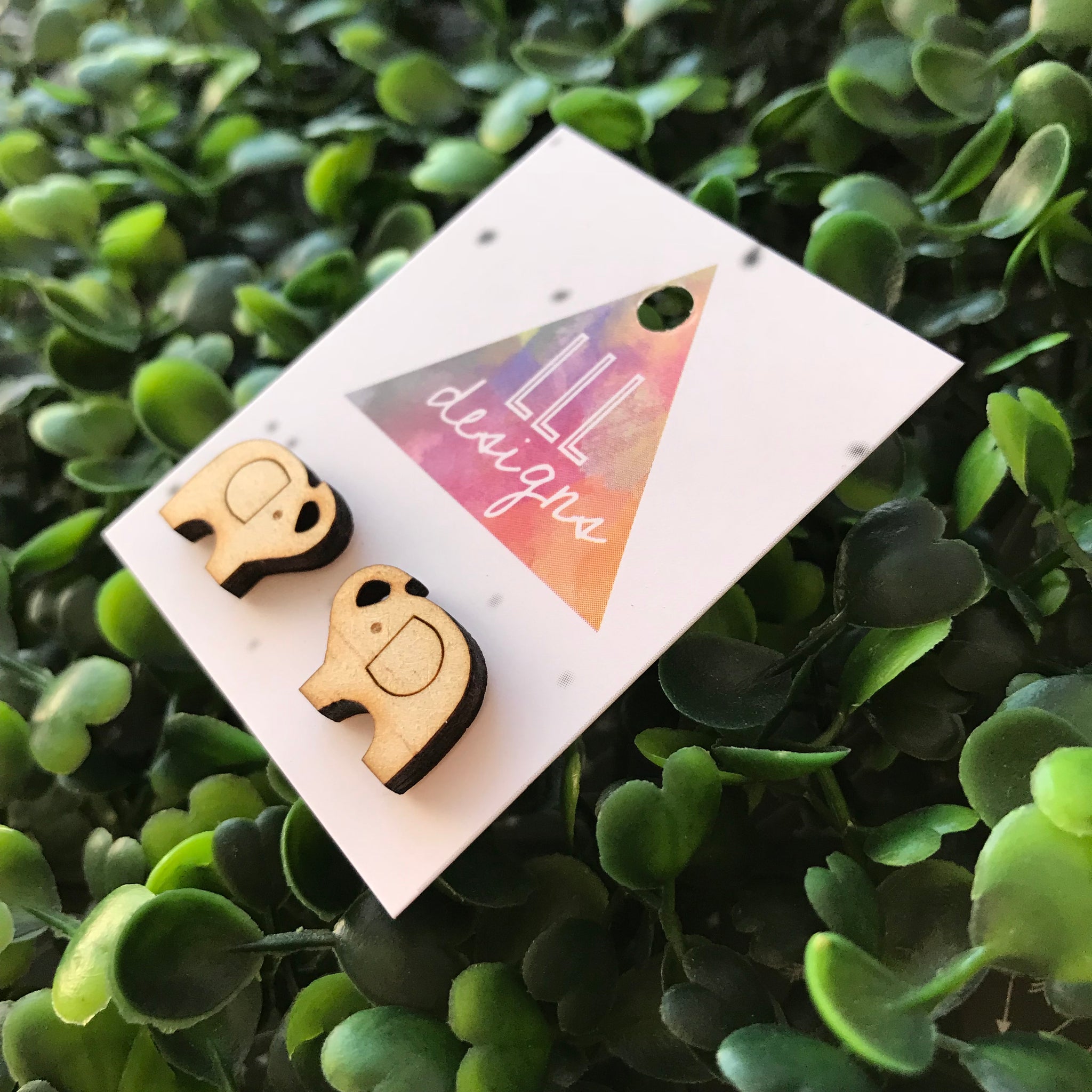 Laser Etched Timber Elephant Stud Earrings.