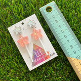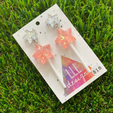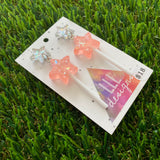Light Pink Iridescent Glitter Star Lollipop Dangle Earrings Featuring Silver Star Top!