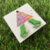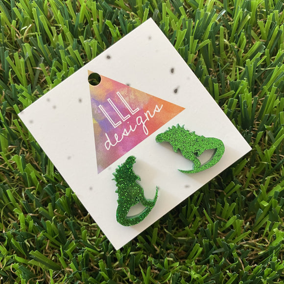 Lizard Earrings - Giant Lizard Studs in Grass Green Glitter!