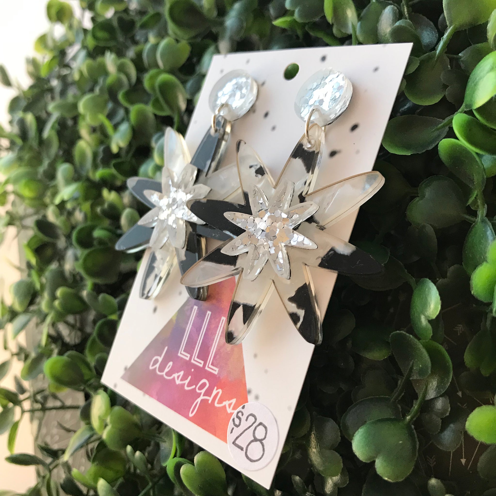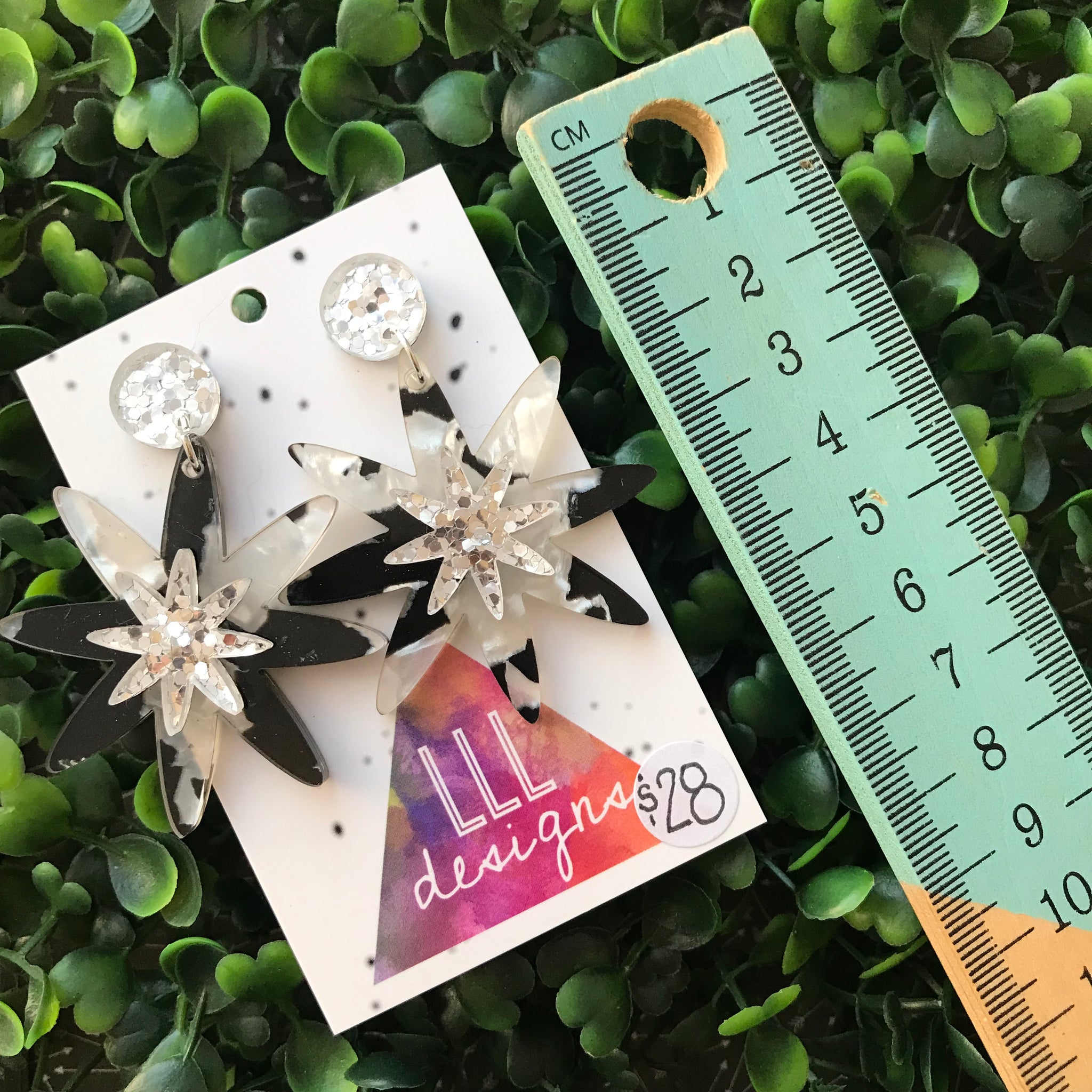 Metallic Silver Flower Burst Dangle Earrings - ArtDeco Inspired Earrings.