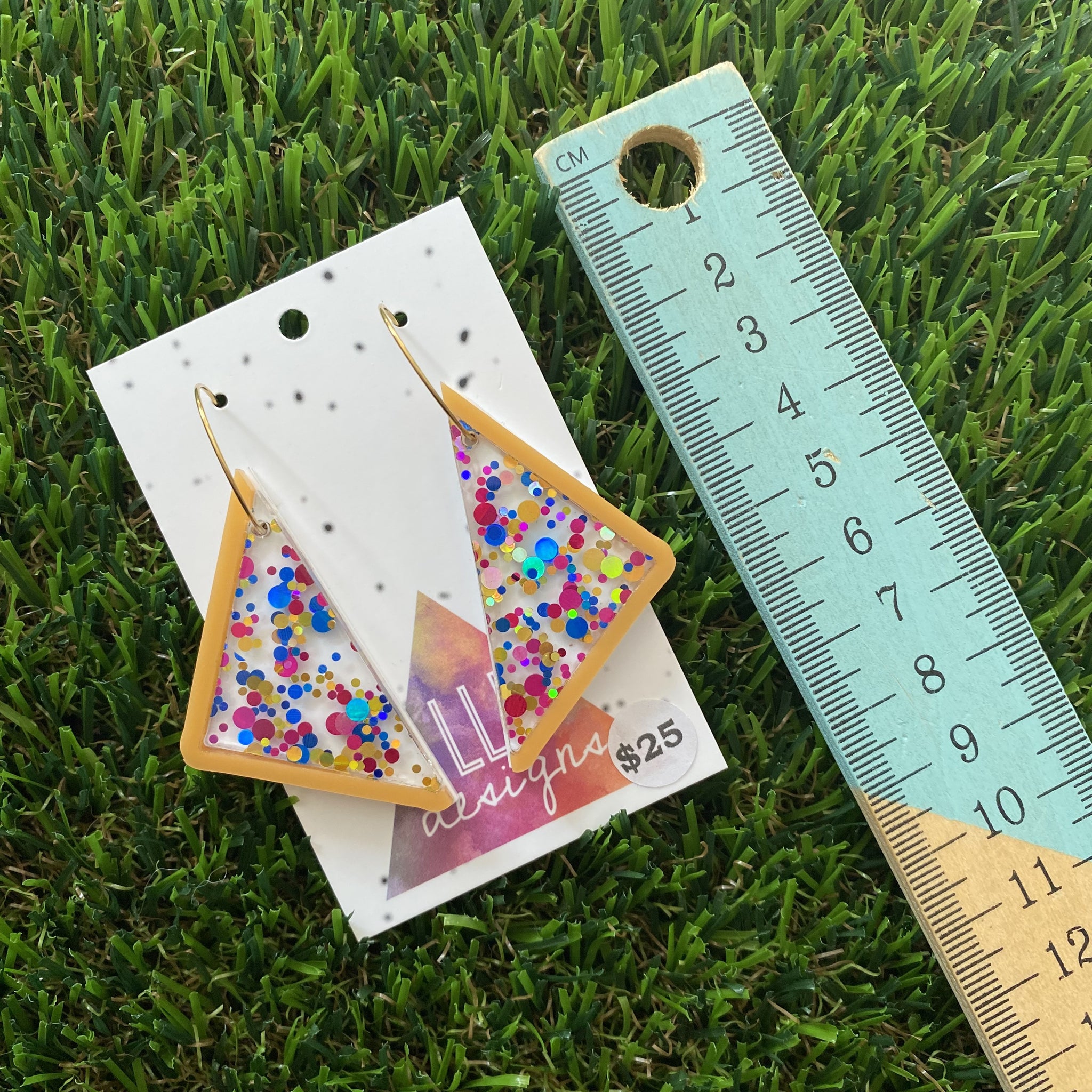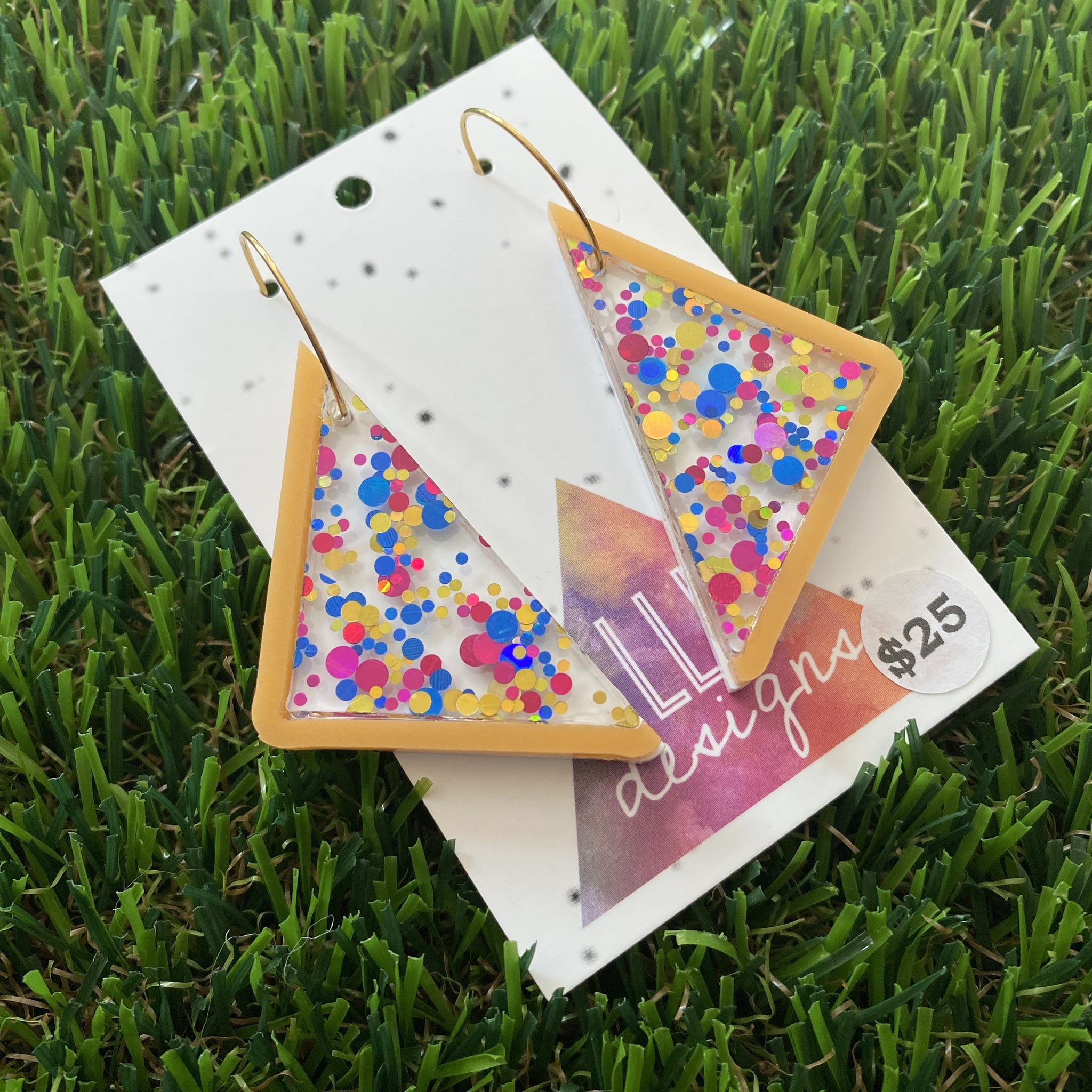 Pink, Blue, and Gold Polka Dot Confetti Fairy Bread Dangles Featuring Gold Hoops!