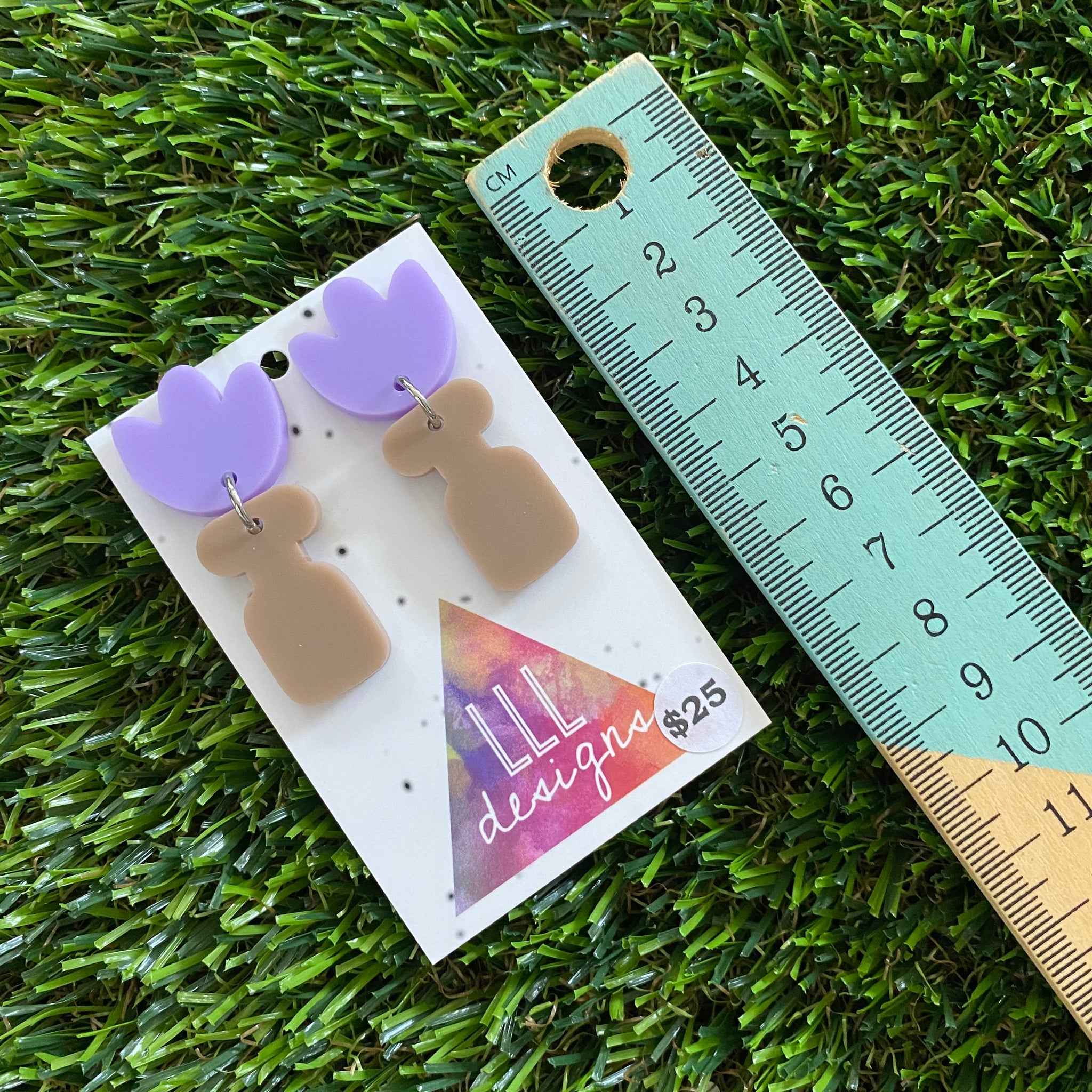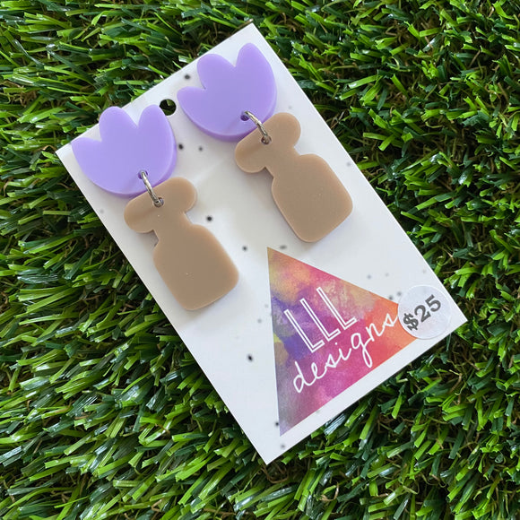 Pottery Earrings - Matte Purple Flower Vase Earrings!