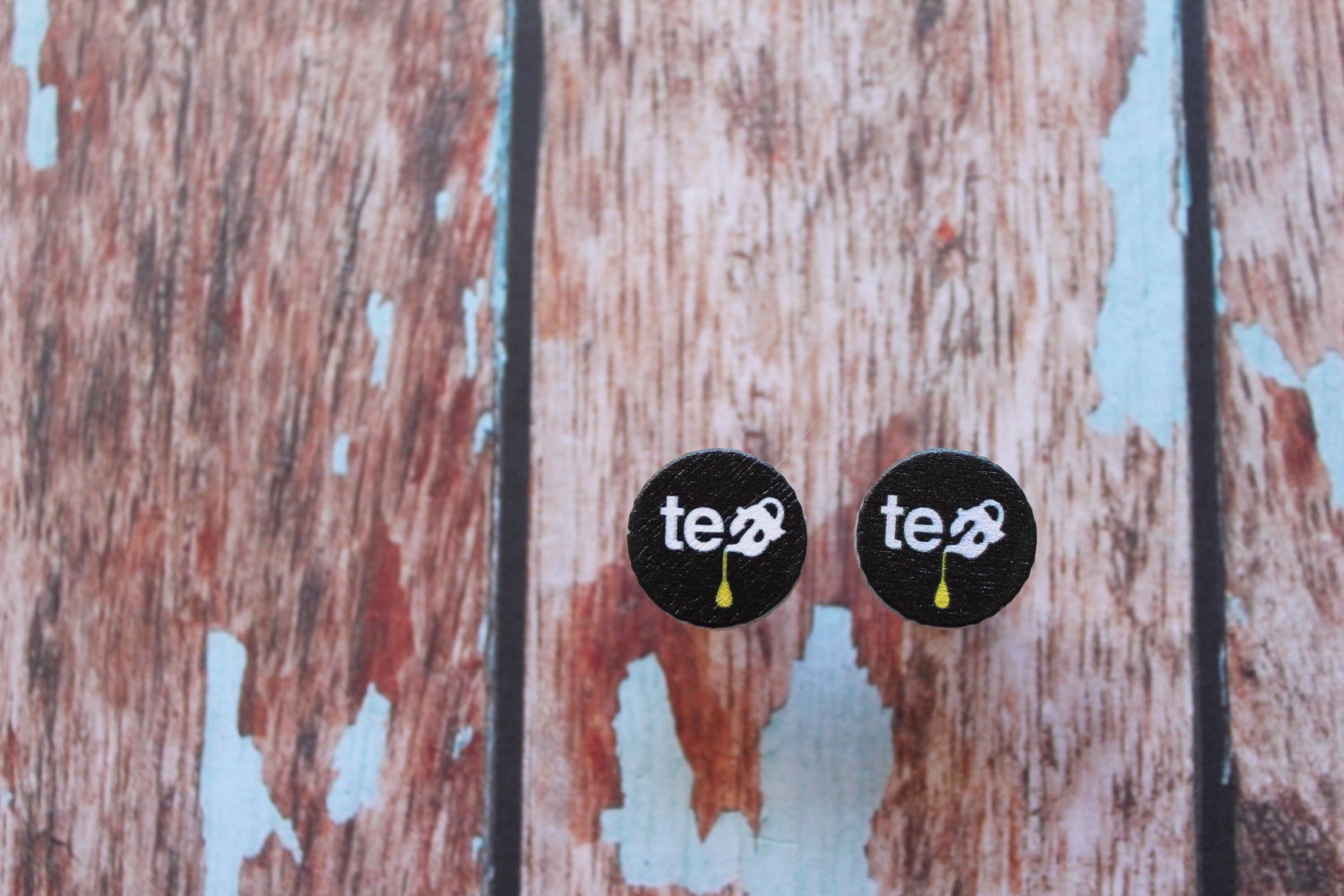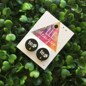 Printed Timber Stud Earrings. (tea timber) Life's too short too wear boring Jewellery. Quirky and fun earrings. Australian Business.
