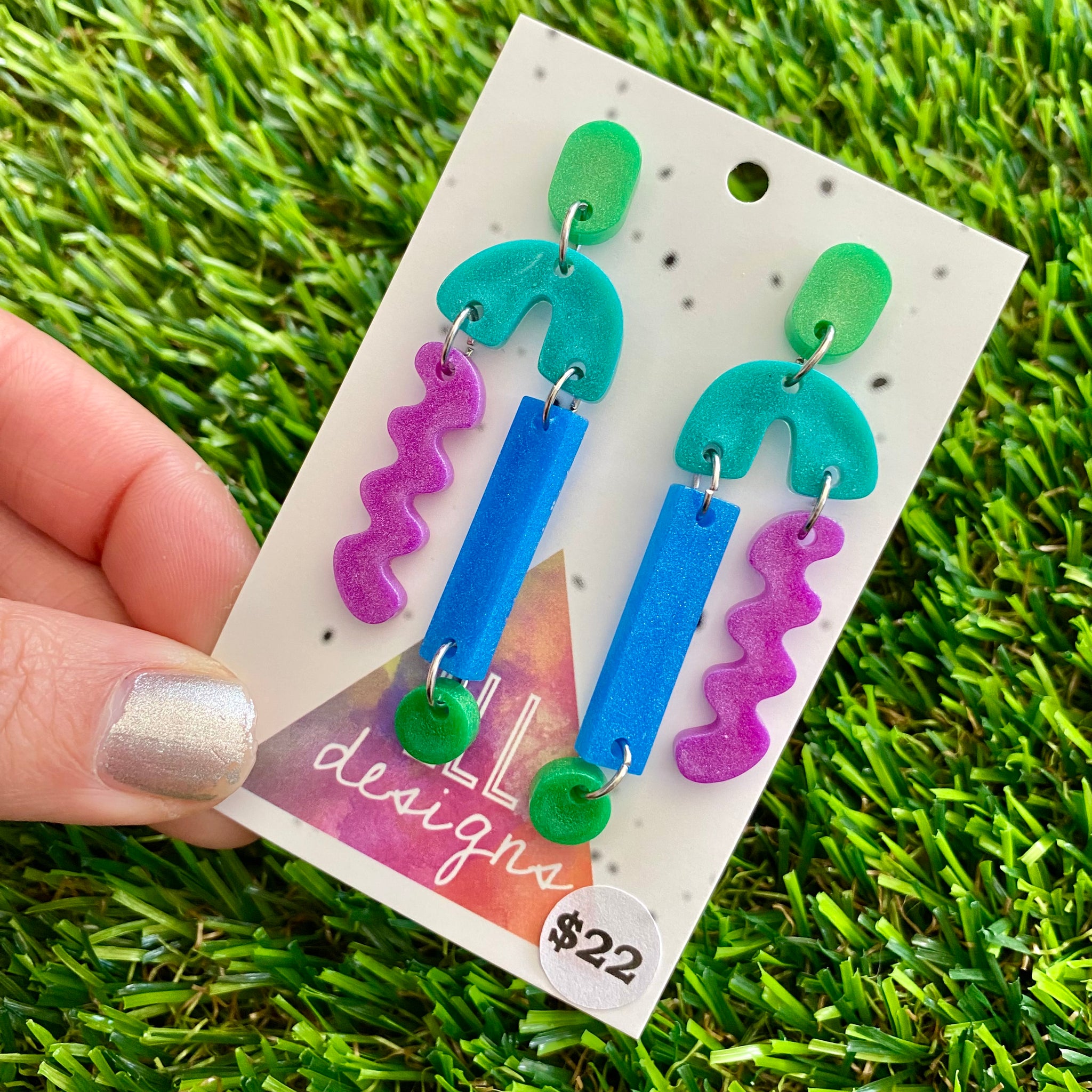 Resin Earrings - Blue, Green and Purple A Bit of Everything Dangles!