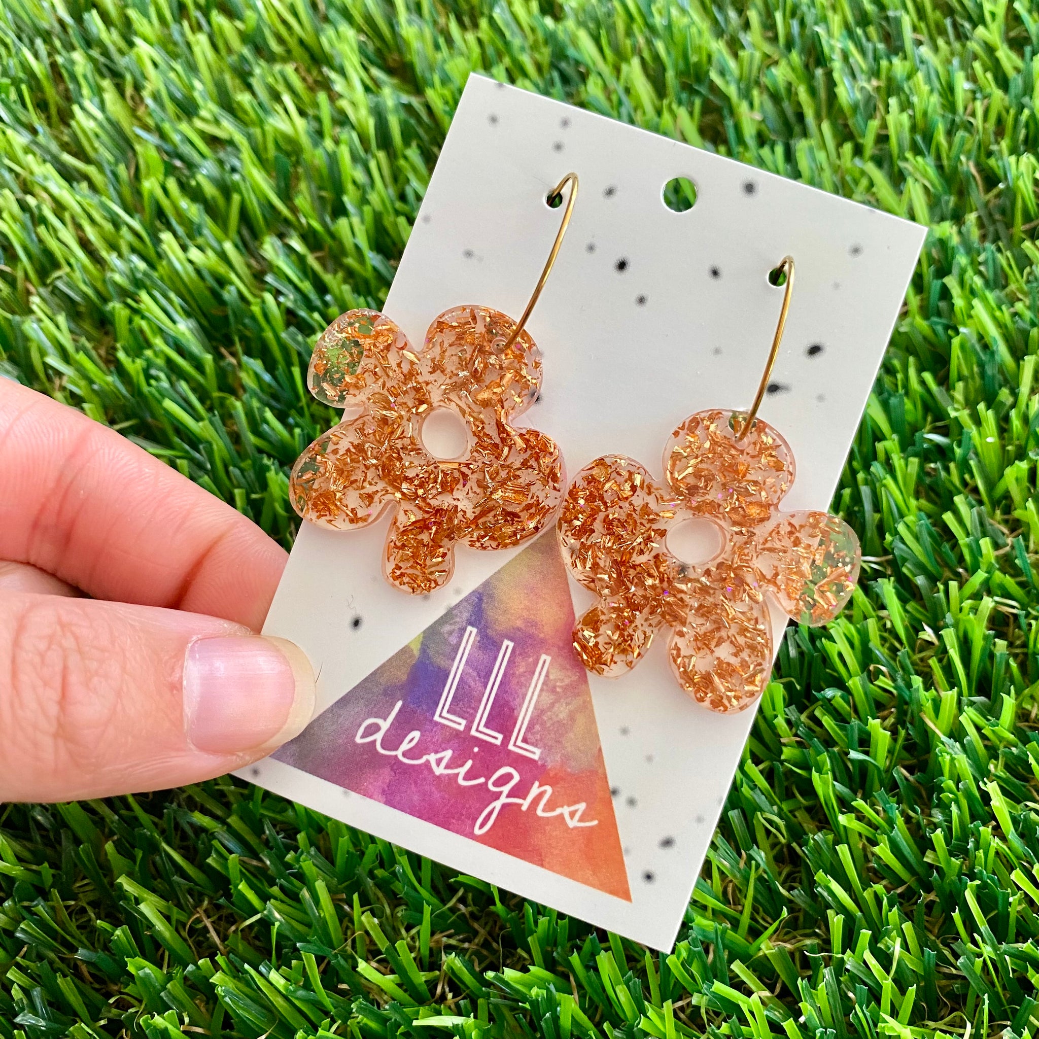 Resin Earrings - Copper Foil Asymmetrical Flower Featuring a Gold Hoop!