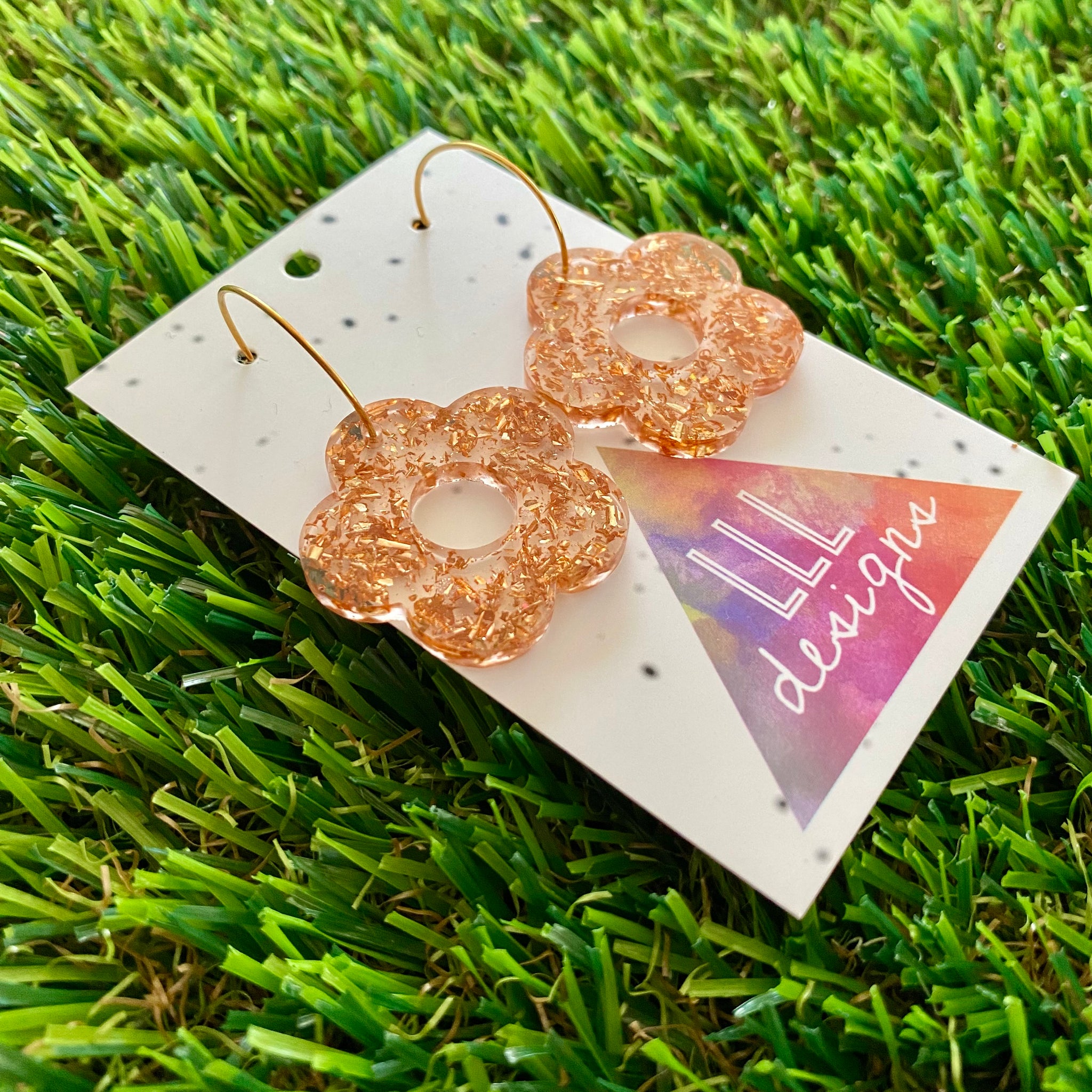 Resin Earrings - Copper Foil Cut Out Daisy Featuring a Gold Hoop!